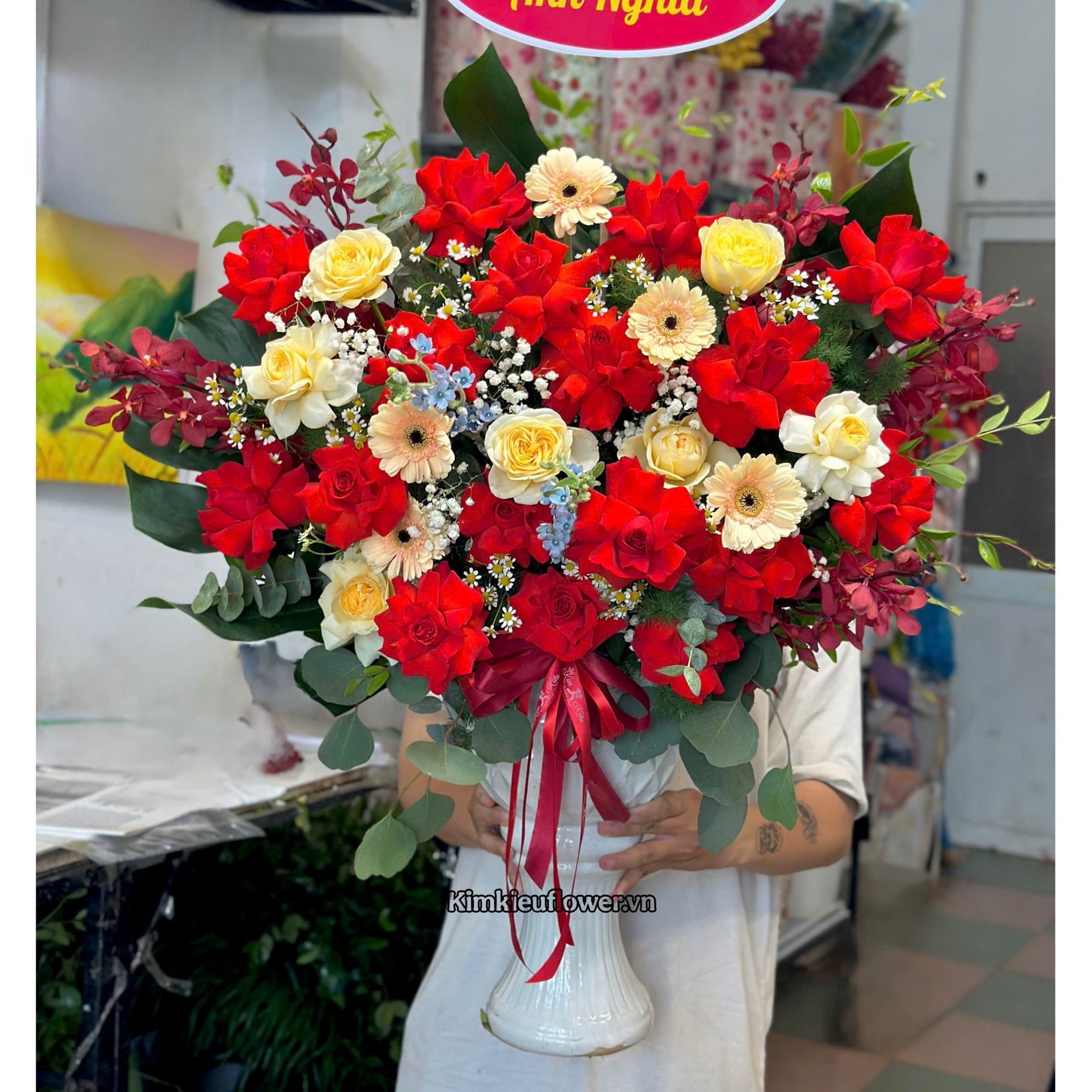 Bình hoa chúc mừng tone đỏ vàng - BI341