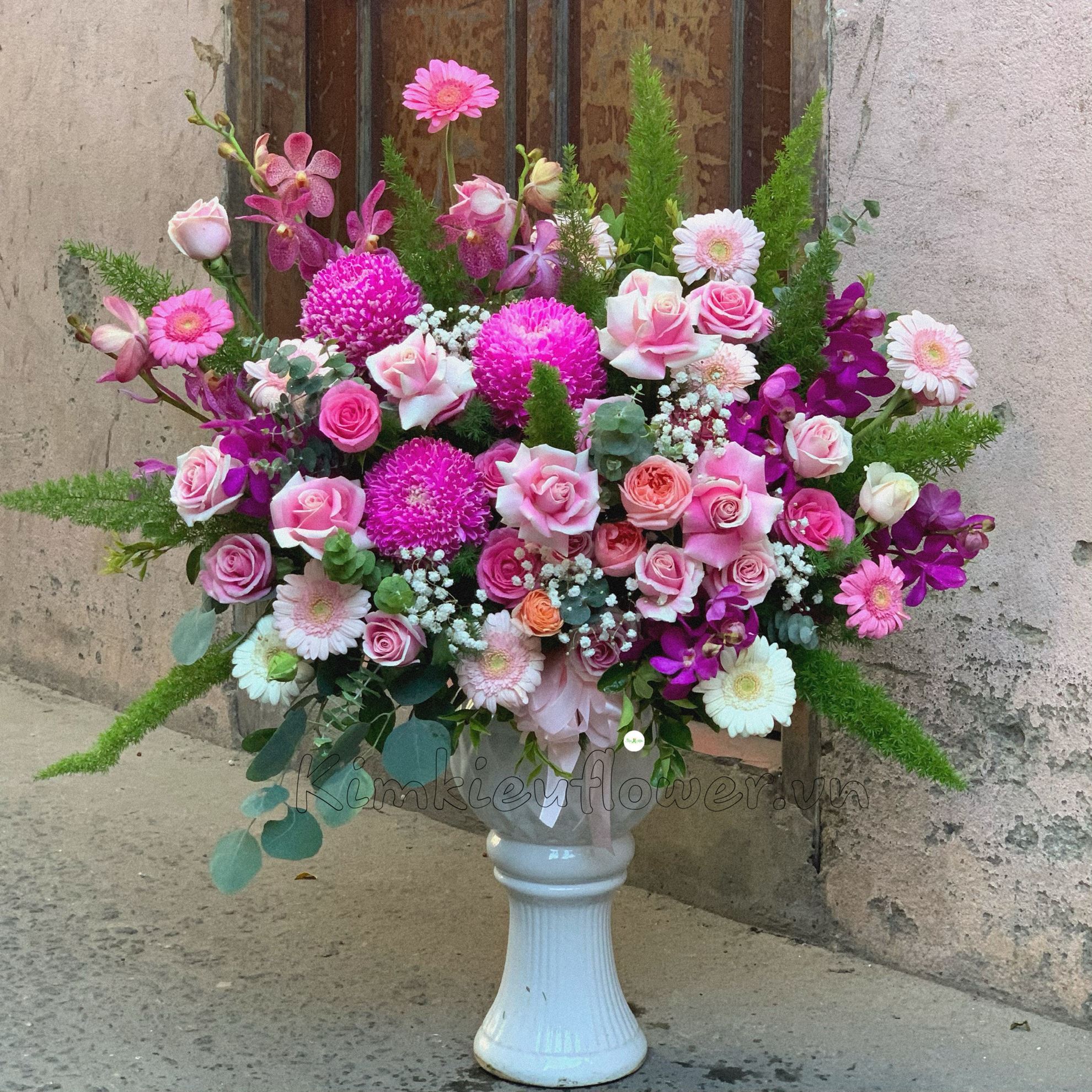 Mẫu BI104 gồm các loại hoa: + 3 cúc mẫu đơn + hoa hồng trà + hoa hồng + lan tím + đồng tiền nhí + lan tím + và các hoa,lá phụ khác- Liên hệ KIM KIỀU FLOWER để tư vấn thiết kế mẫu hoa theo yêu cầu bạn nhé!