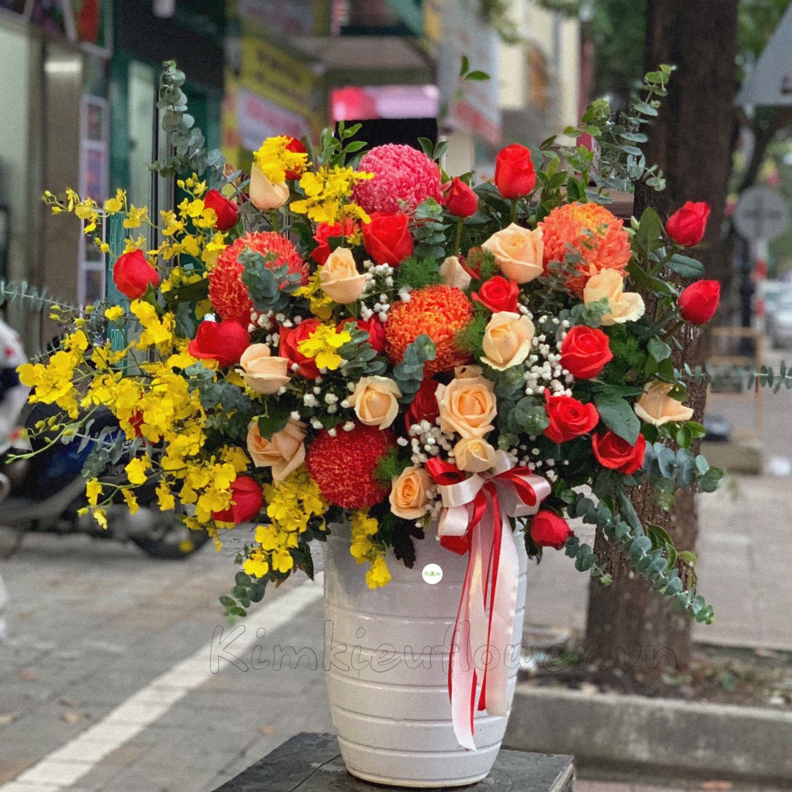 Mẫu BI73 gồm các loại hoa: + hoa cúc mẫu đơn + lan vũ nữ + hoa hồng mỡ gà + hoa hồng cam ớt + và các hoa,lá phụ khác- Liên hệ KIM KIỀU FLOWER để tư vấn thiết kế mẫu hoa theo yêu cầu bạn nhé!