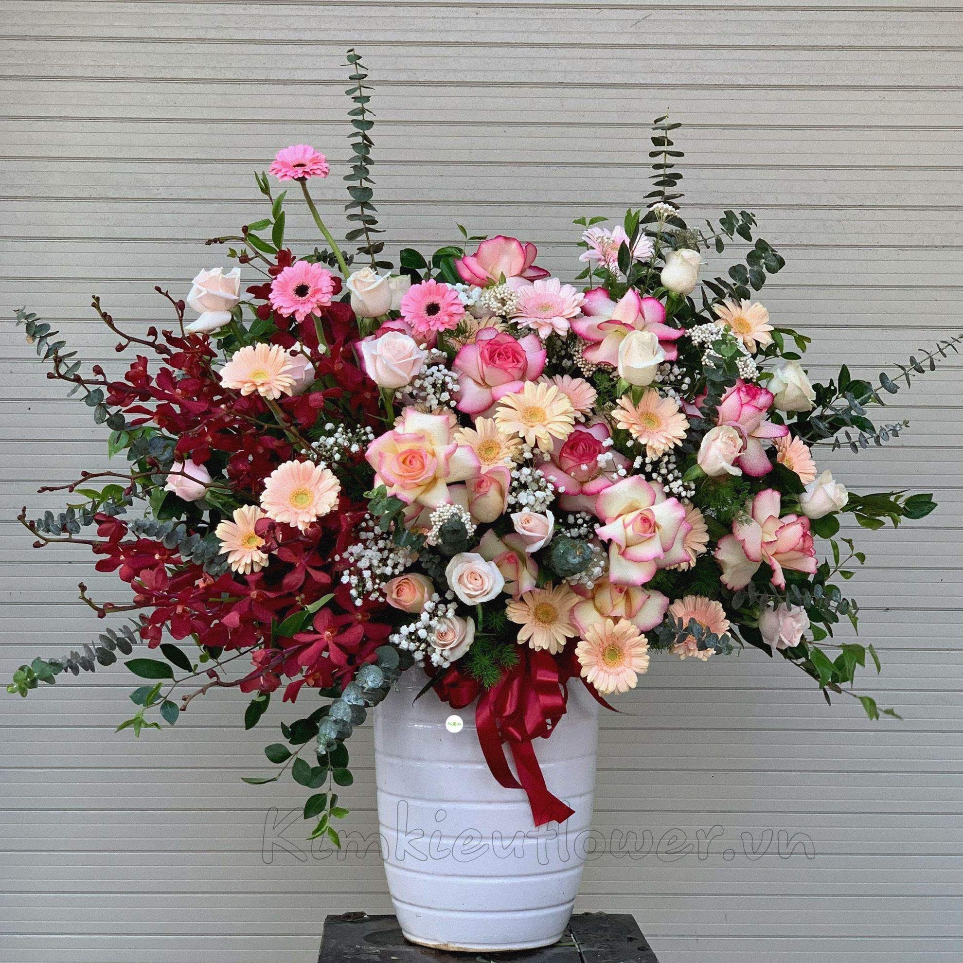 Mẫu BI98 gồm các loại hoa: + hoa hồng đại hỷ + hoa hồng kem +đồng tiền nhí + lan đỏ + và các hoa,lá phụ khác- Liên hệ KIM KIỀU FLOWER để tư vấn thiết kế mẫu hoa theo yêu cầu bạn nhé!