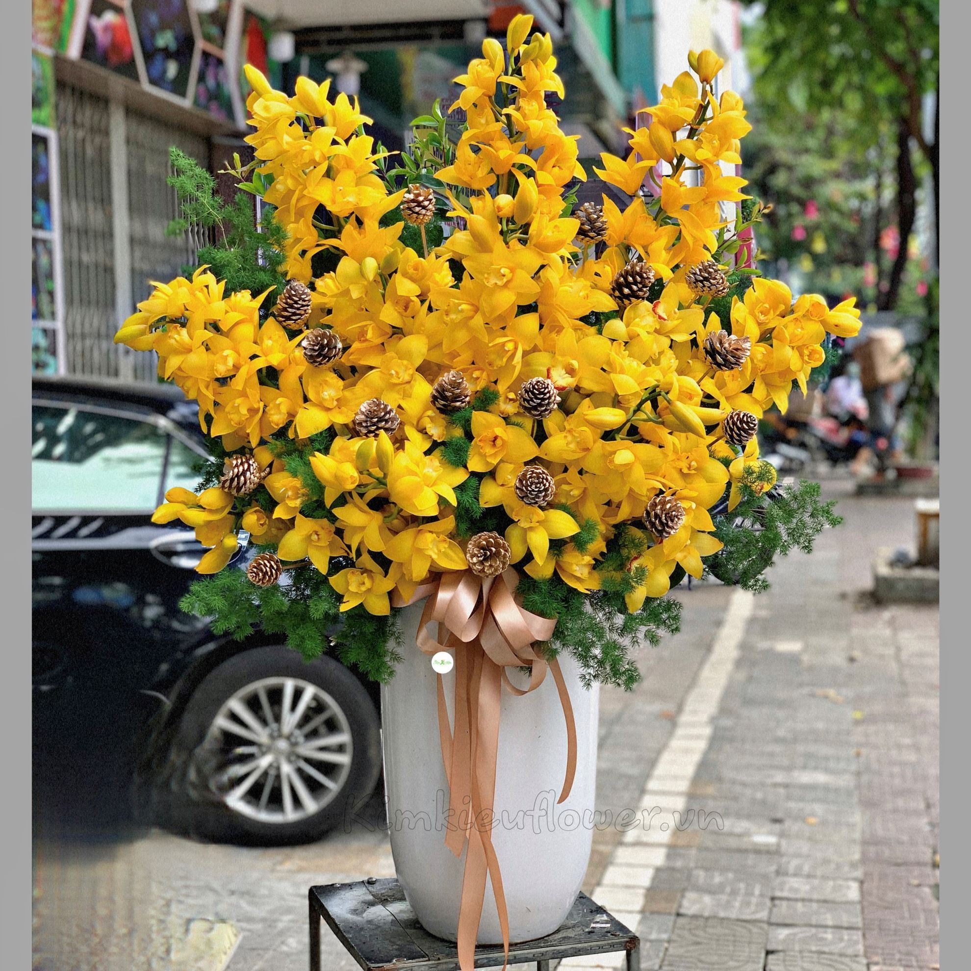 Mẫu BI150 gồm các loại hoa: + hoa địa lan vàng + và các hoa,lá phụ khác - Liên hệ KIM KIỀU FLOWER để tư vấn thiết kế mẫu hoa theo yêu cầu bạn nhé! Lưu ý : ĐỊA LAN THEO MÙA, KHÁCH HÀNG CẦN ĐẶT BÁO SHOP TRƯỚC NHÉ!