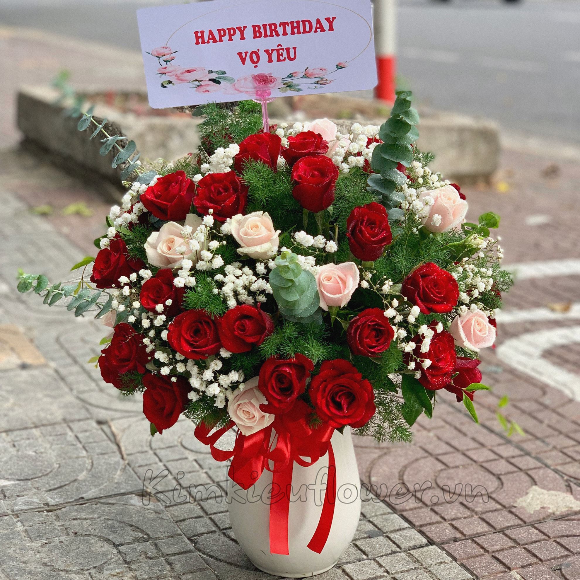 Mâu BI39 với thiết kế kiểu cắm tròn với bình sứ đơn giản ko cách điệu nhưng nó toát lên vẻ đẹp ngọt ngào, lãng mạn... - Thích hợp tặng các dịp sinh nhật, kỉ niệm... - Mẫu BI39 gồm các loại hoa: + hoa hồng đỏ + hoa hồng kem + và các hoa,lá phụ khác - Liên hệ KIM KIỀU FLOWER để tư vấn thiết kế mẫu hoa theo yêu cầu bạn nhé!