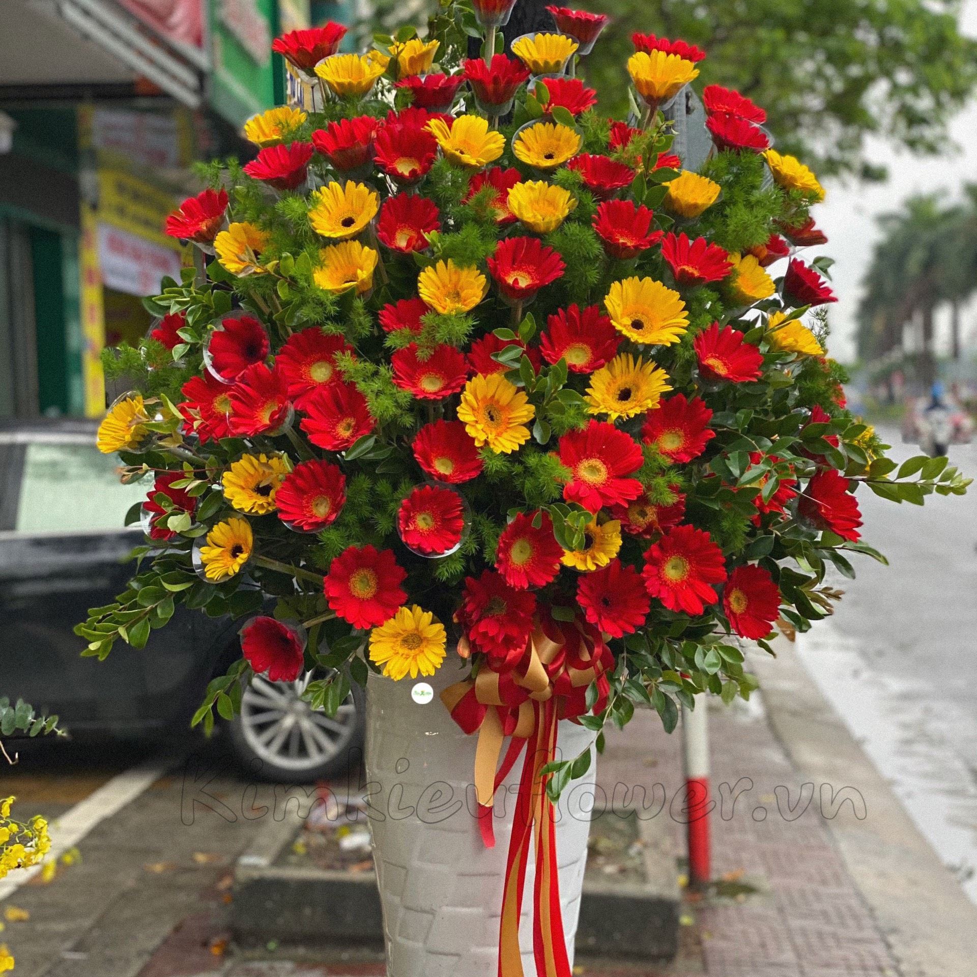 Mẫu BI65 : Hoa đồng tiền tượng trưng cho sự may mắn, hạnh phúc và tài lộc. Là loại hoa được nhiều người ưa chuộng khi tặng khai trương với ý nghĩa mong gia chủ kiếm được nhiều tiền , và thật thật nhiều tiền hơn. Thích hợp với đi khai trương, tân gia... - Mẫu BI65 gồm các loại hoa: + hoa đồng tiền vàng, đỏ + và các hoa,lá phụ khác - Liên hệ KIM KIỀU FLOWER để tư vấn thiết kế mẫu hoa theo yêu cầu bạn nhé!