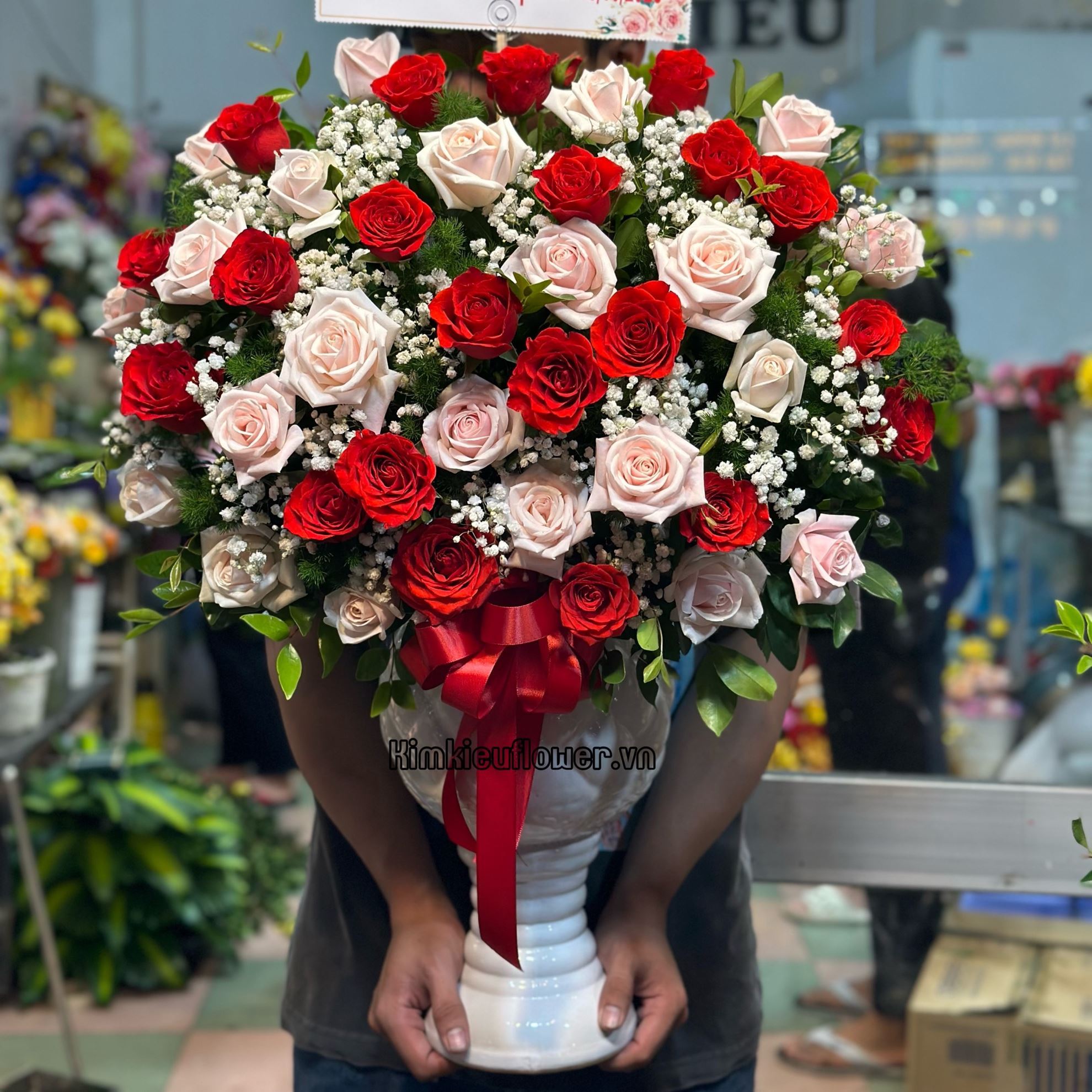 Mẫu BI04: Tình yêu, tình thương sẽ lớn lên khi chúng ta biết cách cho đi. Không cần nhiều những thứ vật chất hay cao sang, một bình hoa tươi chính là một trong những món quà ý nghĩa và chứa đựng nhiều yêu thương nhất. Bình hoa gồm những cánh hồng đỏ, kem tươi tắn và hoa baby phụ dễ thương mà đầy tinh tế. - Mẫu BI04 gồm các loại hoa: + hoa hồng kem + hoa hồng đỏ + và các hoa,lá phụ khác - Liên hệ KIM KIỀU FLOWER để tư vấn thiết kế mẫu hoa theo yêu cầu bạn nhé!