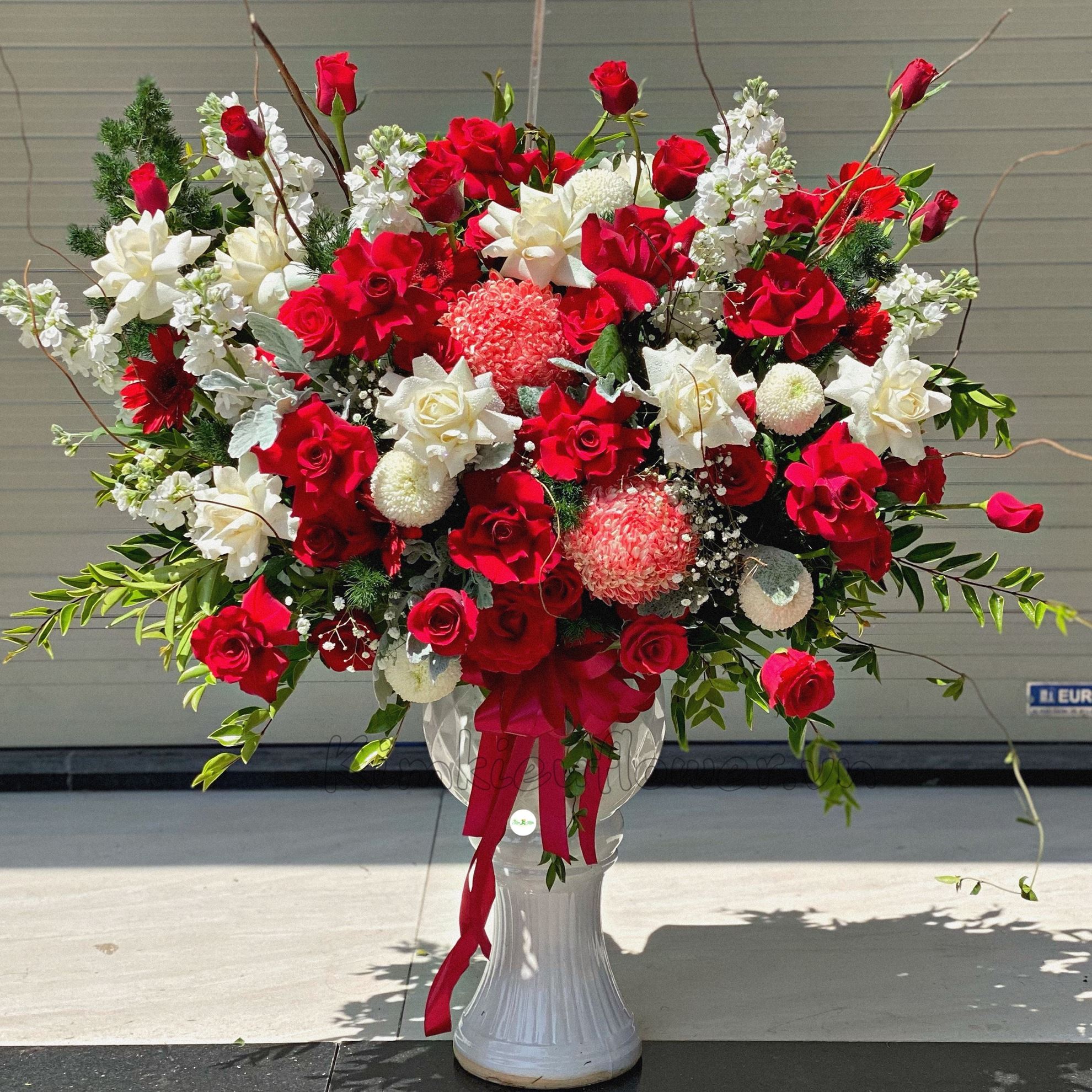 Mẫu BI125 gồm các loại hoa: + hoa hồng đỏ + hoa hồng trắng + 2 cúc mẫu đơn + hoa phi yến + cúc pingpong trắng + và các hoa,lá phụ khác- Liên hệ KIM KIỀU FLOWER để tư vấn thiết kế mẫu hoa theo yêu cầu bạn nhé!