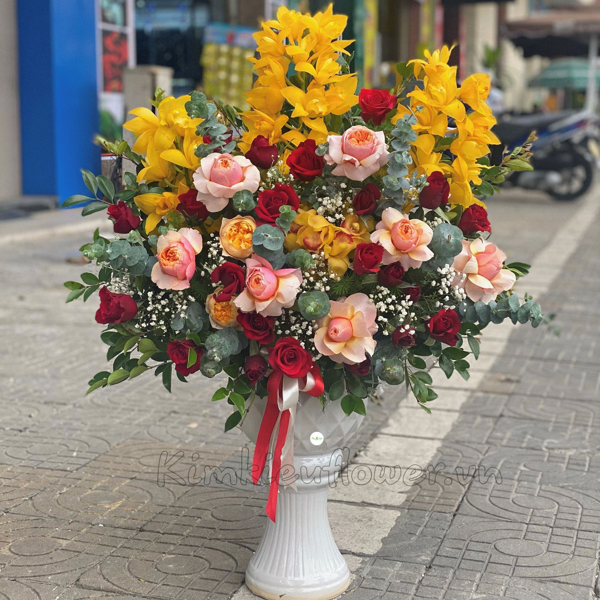 Mẫu BI82 gồm các loại hoa: + hoa hồng juliet + hoa hồng đỏ + địa lan + và các hoa,lá phụ khác- Liên hệ KIM KIỀU FLOWER để tư vấn thiết kế mẫu hoa theo yêu cầu bạn nhé!