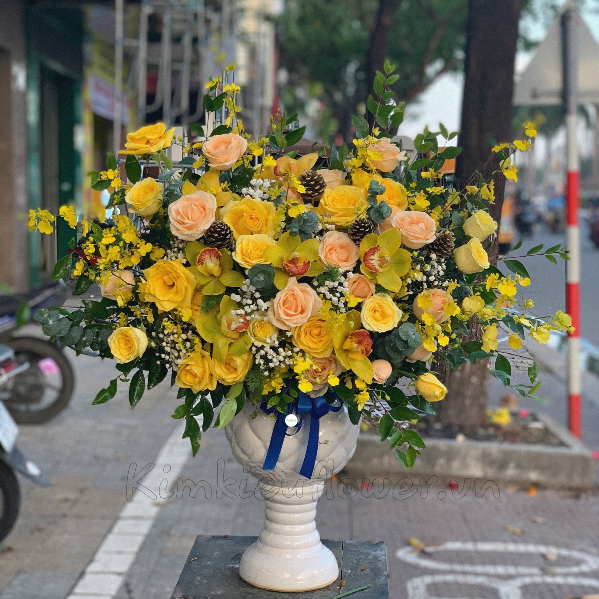 - Mẫu BI70 gồm các loại hoa: + hoa hồng mỡ gà + hoa hồng vàng + địa lan + lan vũ nữ + và các hoa,lá phụ khác- Liên hệ KIM KIỀU FLOWER để tư vấn thiết kế mẫu hoa theo yêu cầu bạn nhé!