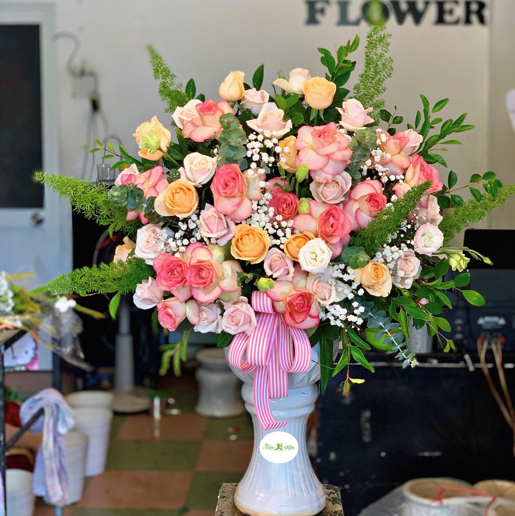Mẫu BI35 gồm các loại hoa: + hoa hồng mỡ gà + hoa hồng kem + hoa hồng son môi + và các hoa,lá phụ khác- Liên hệ KIM KIỀU FLOWER để tư vấn thiết kế mẫu hoa theo yêu cầu bạn nhé!