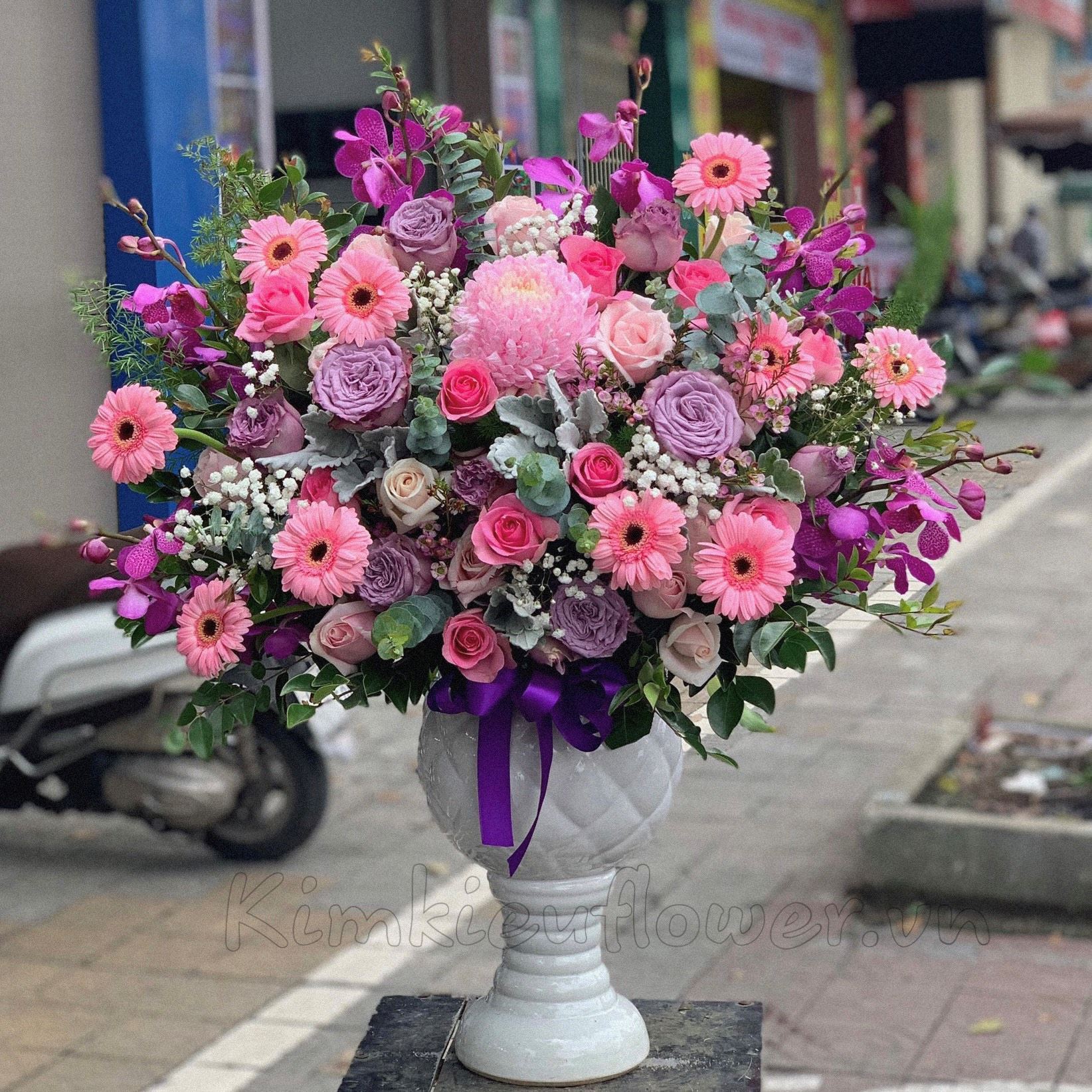 Mẫu BI75 gồm các loại hoa: + hoa hồng tím nhập + hoa hồng + đồng tiền nhí + lan tím + và các hoa,lá phụ khác- Liên hệ KIM KIỀU FLOWER để tư vấn thiết kế mẫu hoa theo yêu cầu bạn nhé!