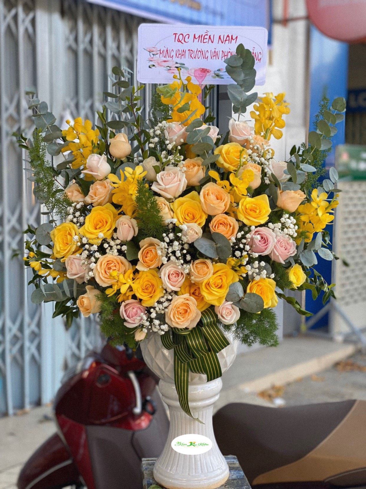 - Mẫu BI19 gồm các loại hoa: + hoa hồng vàng + hoa hồng kem + hoa hồng mỡ gà + lan vàng + và các hoa,lá phụ khác - Liên hệ KIM KIỀU FLOWER để tư vấn thiết kế mẫu hoa theo yêu cầu bạn nhé!