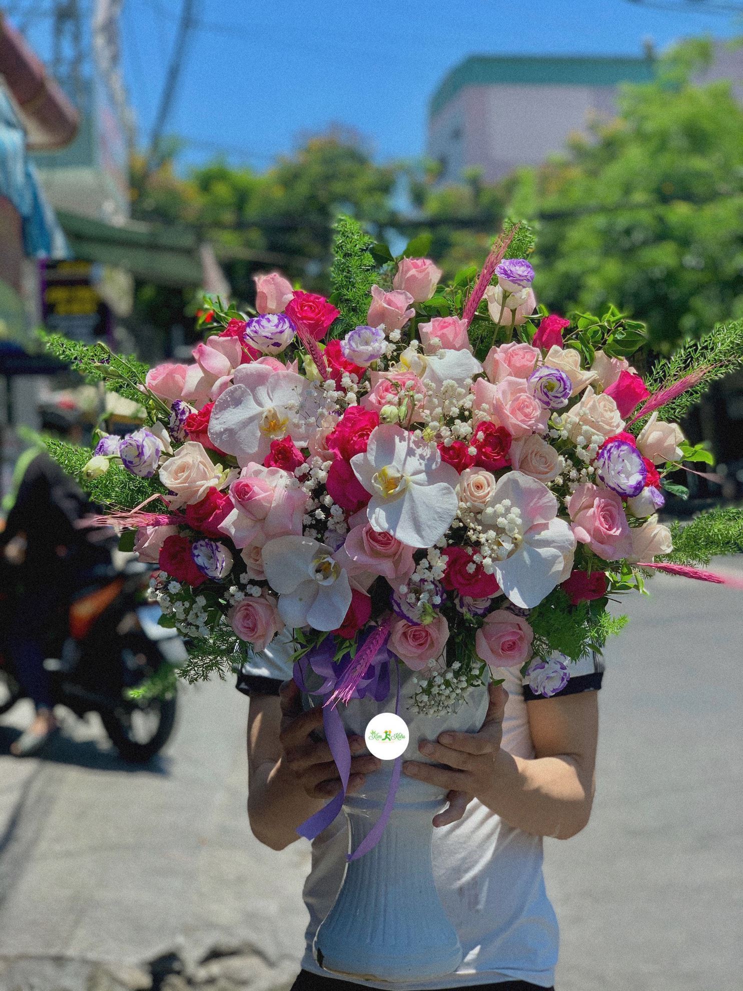 Bình hoa lan hồ điệp, hoa hồng- BI21