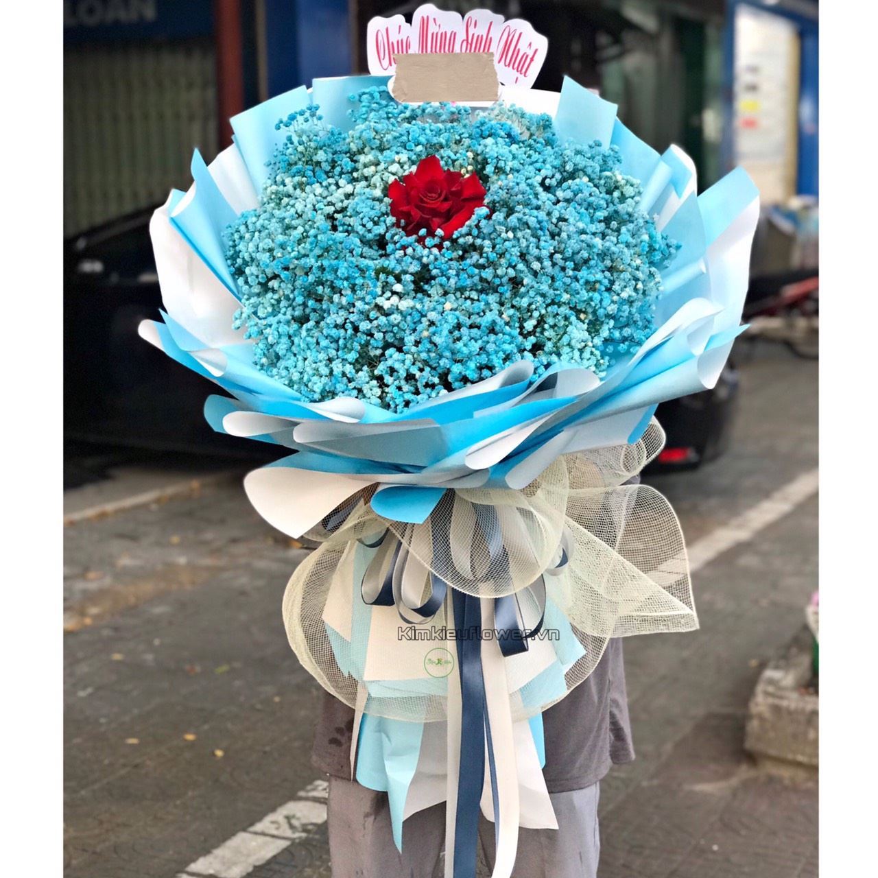 Mẫu HB443 gồm các loại hoa: + hoa baby xanh + 1 hoa hồng đỏ + và các lá phụ khác - Liên hệ KIM KIỀU FLOWER để tư vấn thiết kế mẫu hoa theo yêu cầu bạn nhé!