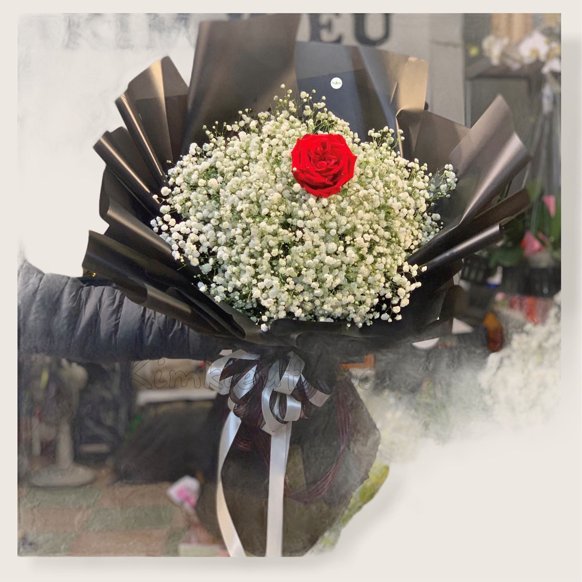 Mẫu HB126 : " Em là duy nhất trong anh" bó hoa baby Hà Lan nhập khẩu , một bông hồng đỏ thay lời cho tất cả các chàng trai ngại thổ lộ với các nàng những lời mật ngọt, yêu thương thong qua bó hoa baby này - Mẫu HB126 gồm các loại hoa: + 1 hoa hồng O'hara + baby Hà Lan