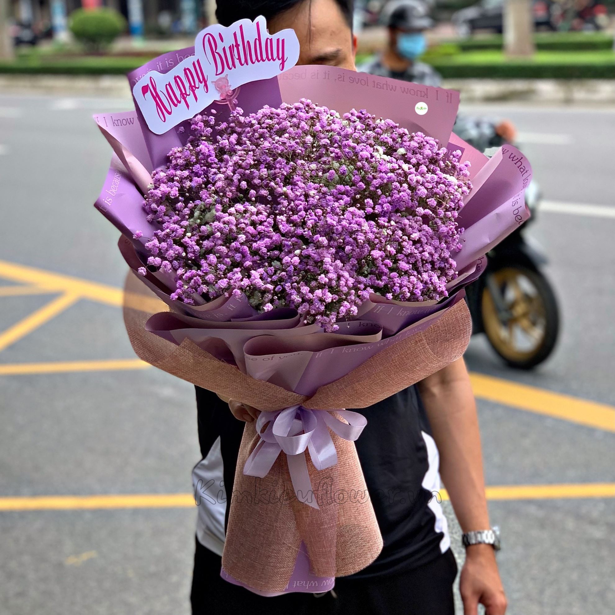 Mẫu HB255 gồm các loại hoa: + baby tím + và các lá phụ khác - Liên hệ KIM KIỀU FLOWER để tư vấn thiết kế mẫu hoa theo yêu cầu bạn nhé!