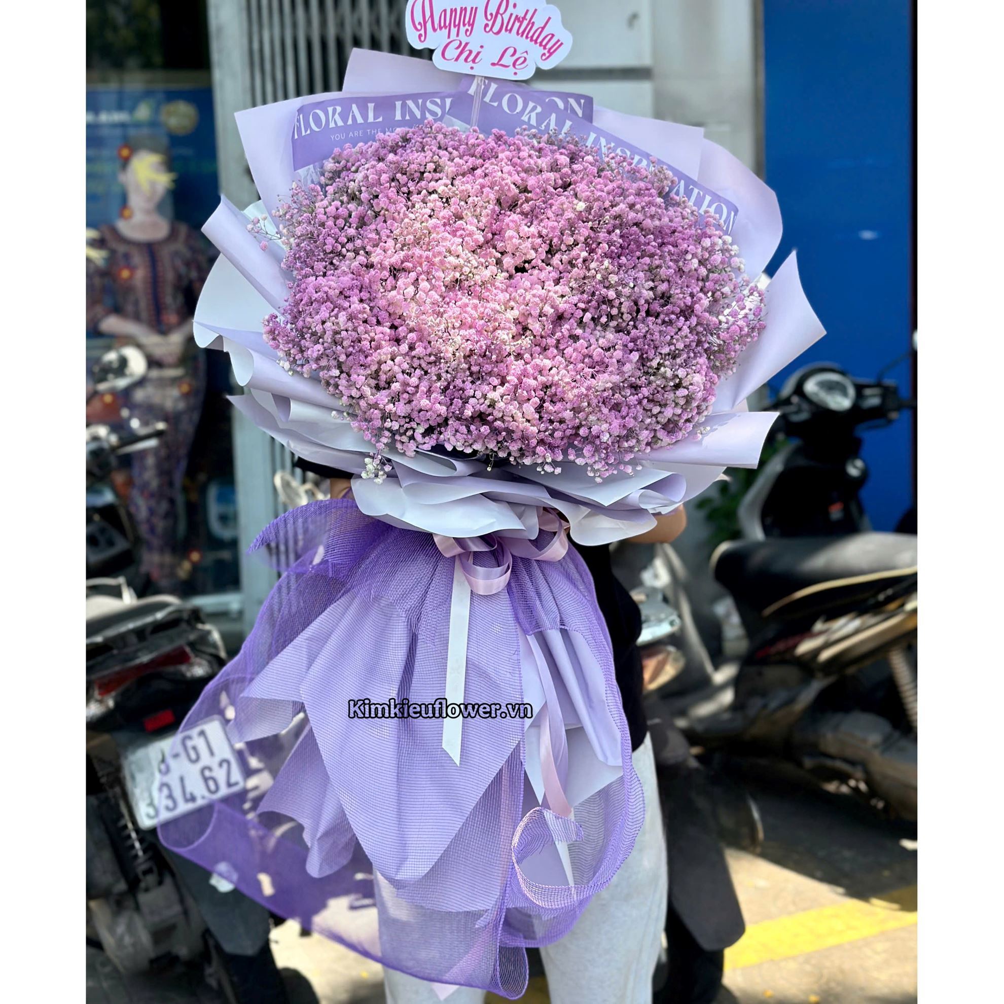 Mẫu HB844 gồm các loại hoa: + Baby trắng xịt màu tím + và các lá phụ khác - Liên hệ KIM KIỀU FLOWER để tư vấn thiết kế mẫu hoa theo yêu cầu bạn nhé!
