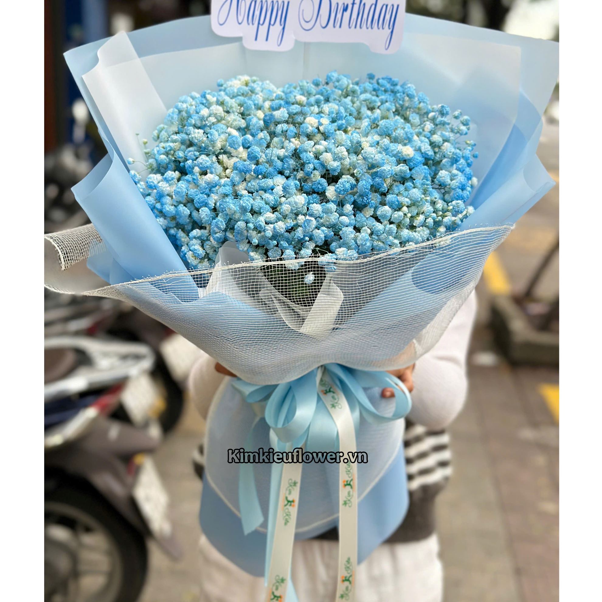 Mẫu HV22 gồm các loại hoa: + hoa baby xịt xanh dương + và các lá phụ khác - Liên hệ KIM KIỀU FLOWER để tư vấn thiết kế mẫu hoa theo yêu cầu bạn nhé!