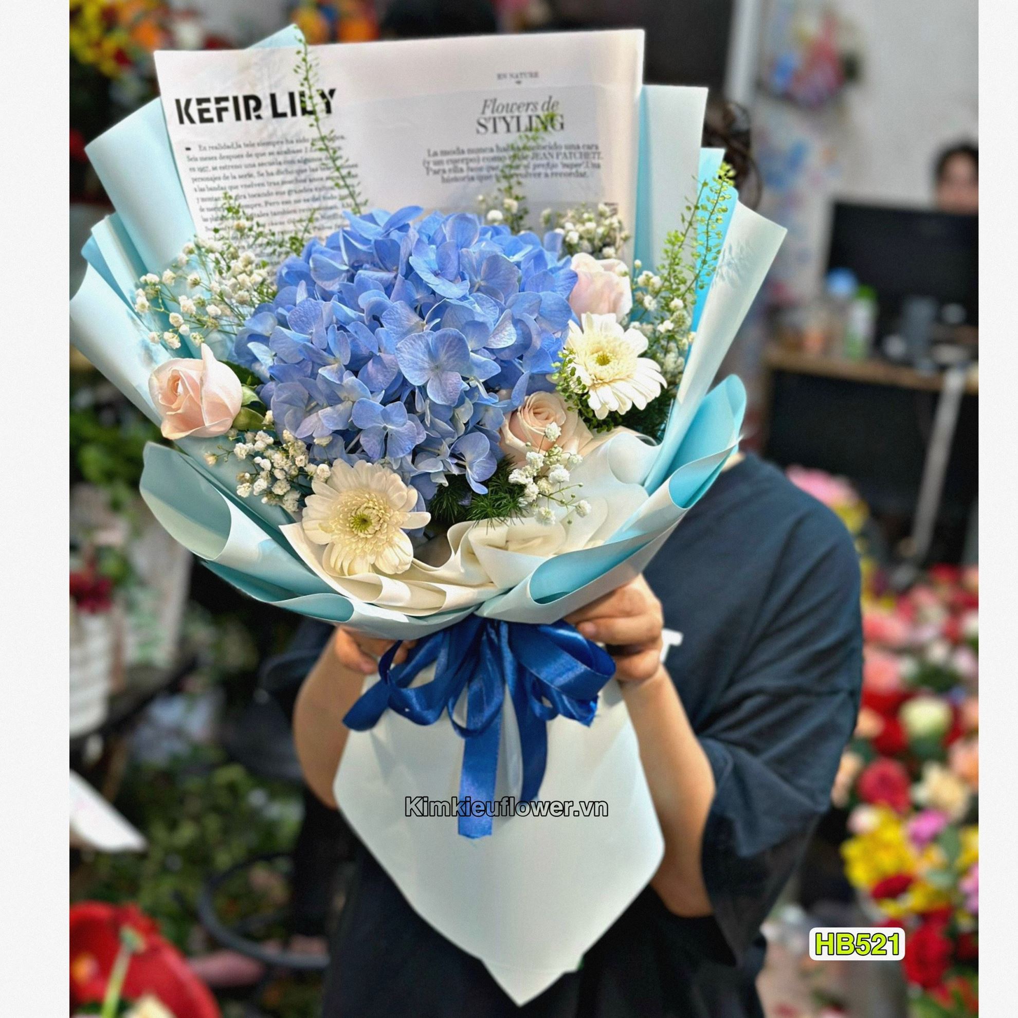 Mẫu HB521 gồm các loại hoa: + hoa cẩm tú cầu xanh nhập khẩu + hoa hồng kem + đồng tiền nhí + và các hoa, lá phụ khác - Liên hệ KIM KIỀU FLOWER để tư vấn thiết kế mẫu hoa theo yêu cầu bạn nhé!