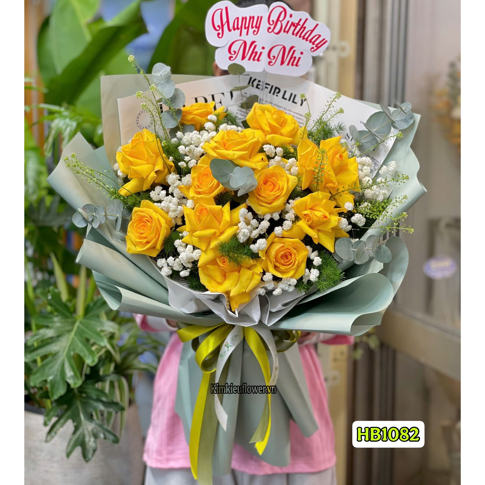 Bó hoa chúc mừng hồng vàng mix lá bạc - HB1082