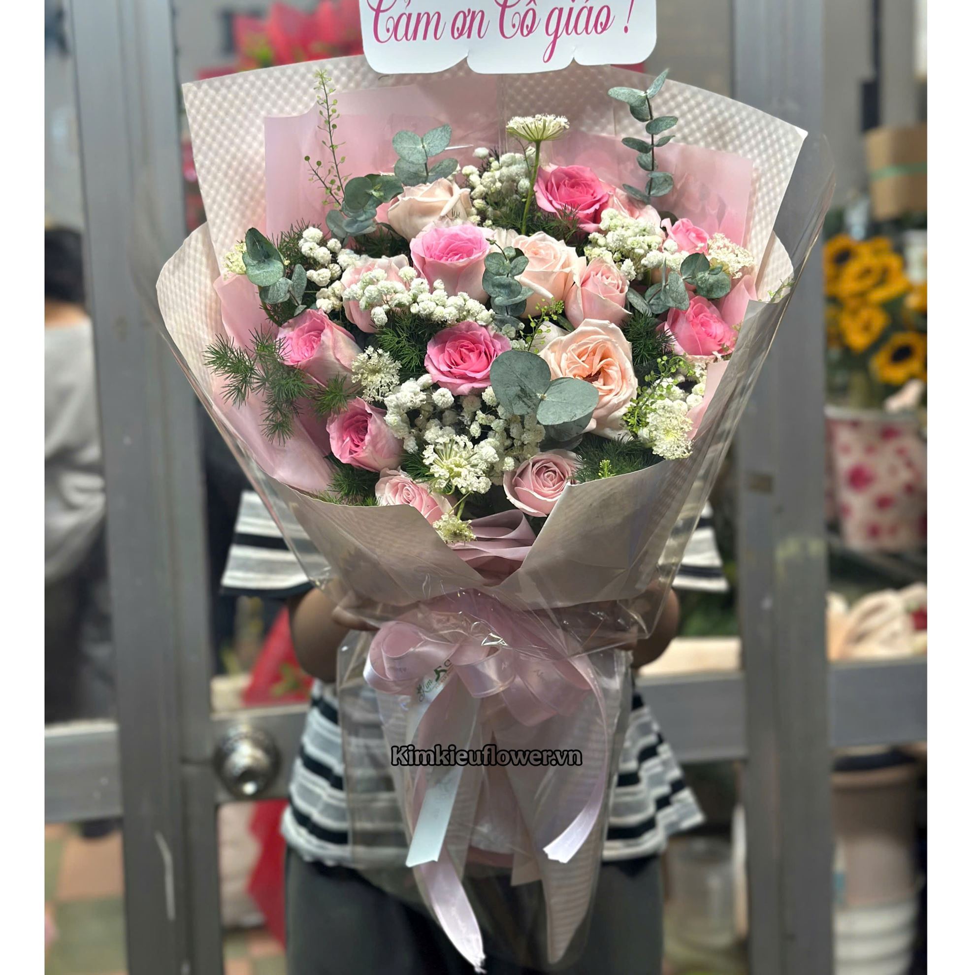 Mẫu HB897 gồm các loại hoa: + 8 lạc thần + 7 hồng kem, 1 ohara hồng + và các lá phụ khác - Liên hệ KIM KIỀU FLOWER để tư vấn thiết kế mẫu hoa theo yêu cầu bạn nhé!