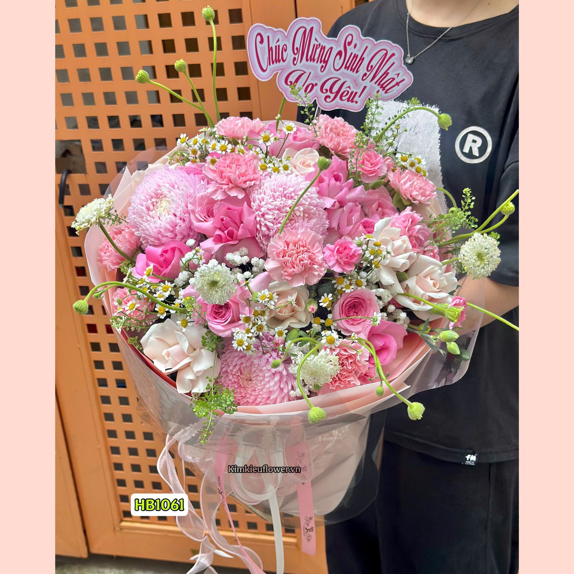Bó hoa chúc mừng tone hồng kiểu bó tròn - HB1061