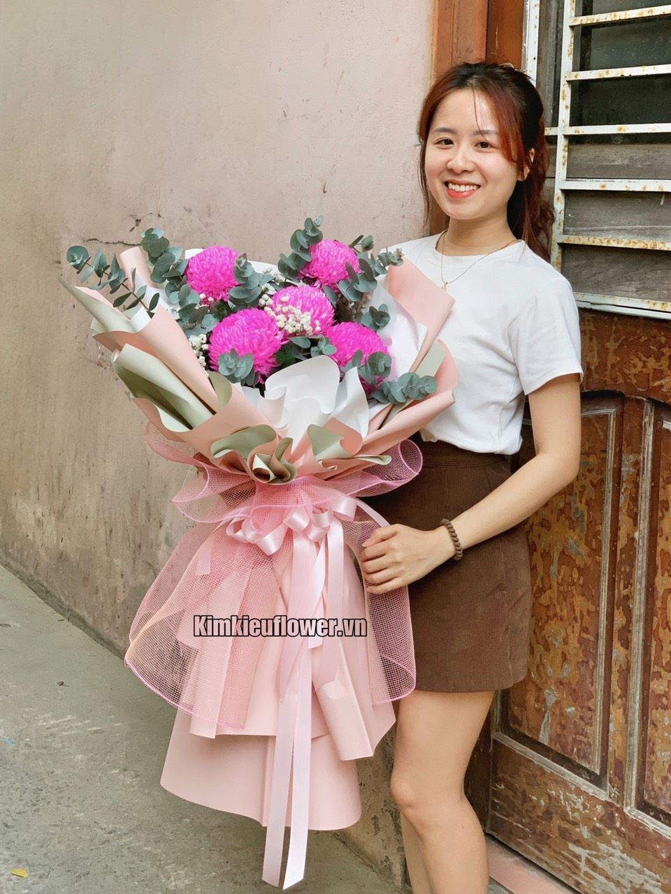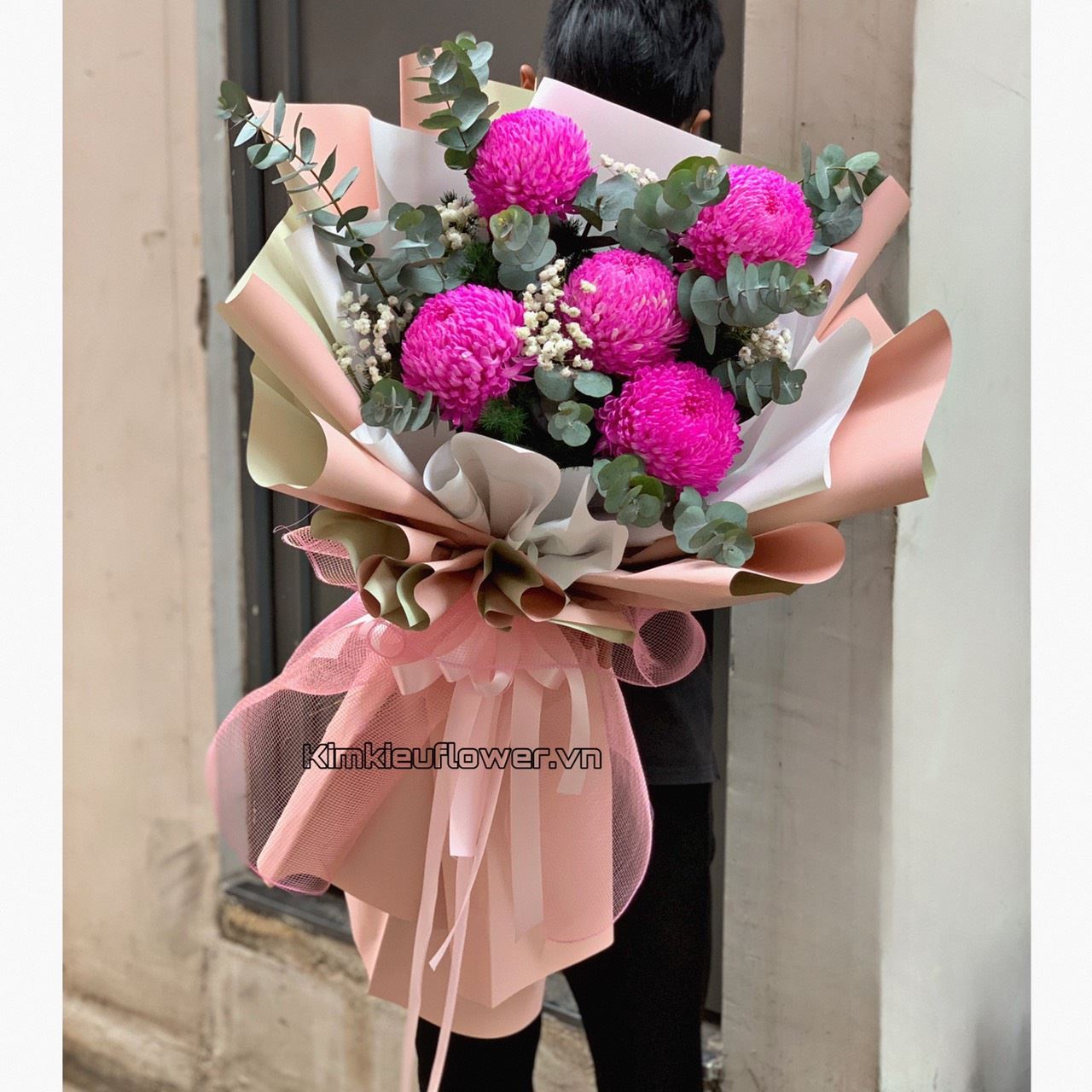 Mẫu HB433 gồm các loại hoa: + 5 cúc mẫu đơn hồng + và các lá phụ khác - Liên hệ KIM KIỀU FLOWER để tư vấn thiết kế mẫu hoa theo yêu cầu bạn nhé!