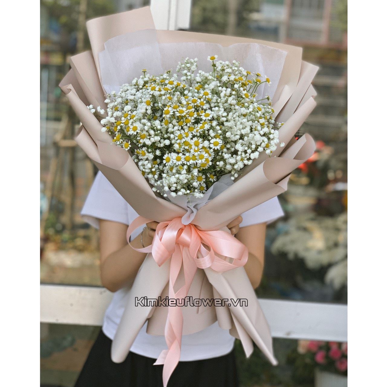 Mẫu HB457 gồm các loại hoa: + hoa cúc tana + hoa baby trắng + và các lá phụ khác - Liên hệ KIM KIỀU FLOWER để tư vấn thiết kế mẫu hoa theo yêu cầu bạn nhé!