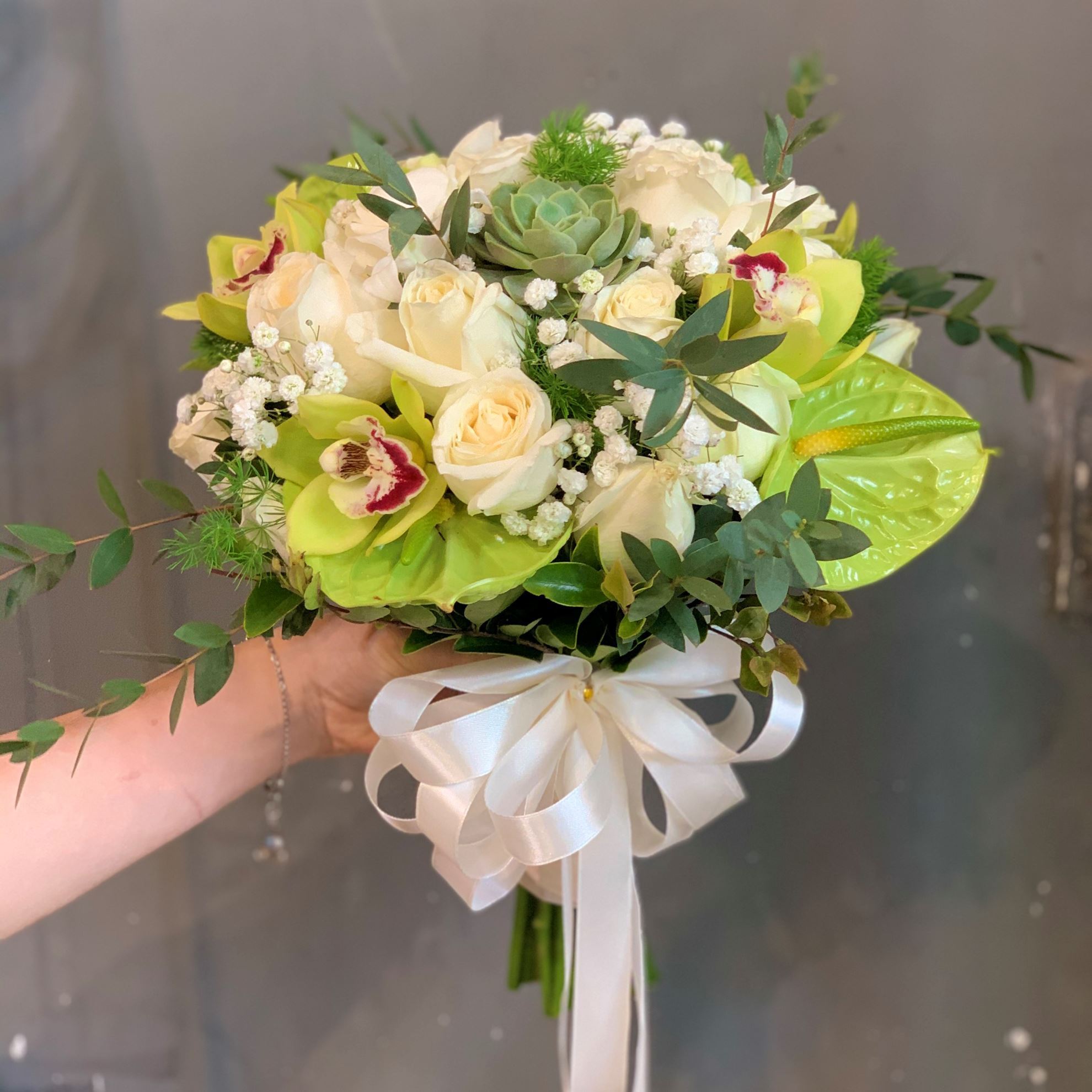 Mẫu HC23 : Được thiết kế với tone màu xanh trắng kèm theo là vẻ đẹp của địa lan quý phái sang trọng, sen đá mạnh mẽ. Bó hoa được ví như tình yêu của cặp đôi cô dâu, chú rễ kiên cường vượt qua mọi khó khăn, gian nan để đến được với nhau. - Mẫu HC23 gồm các loại hoa: + hoa hồng trắng + địa lan + sen đá + môn xanh + và các lá phụ khác- Liên hệ KIM KIỀU FLOWER để tư vấn thiết kế mẫu hoa theo yêu cầu bạn nhé!