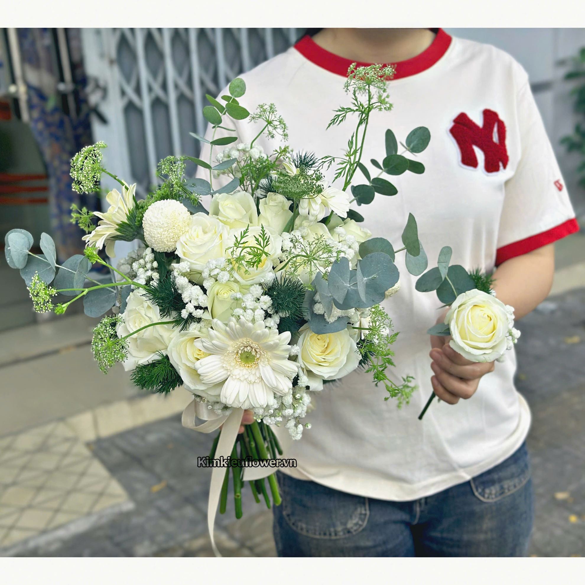 Bó hoa cưới hồng trắng mix pingpong - HC110