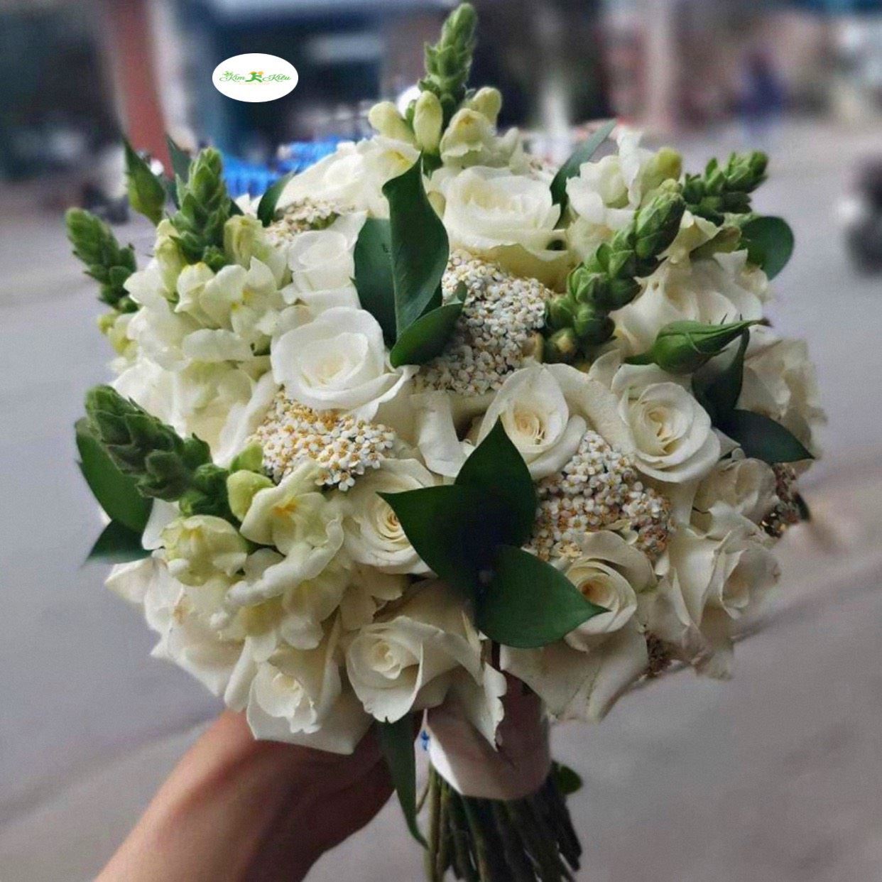 Bó hoa cưới mõm sói, hồng trắng-HC04