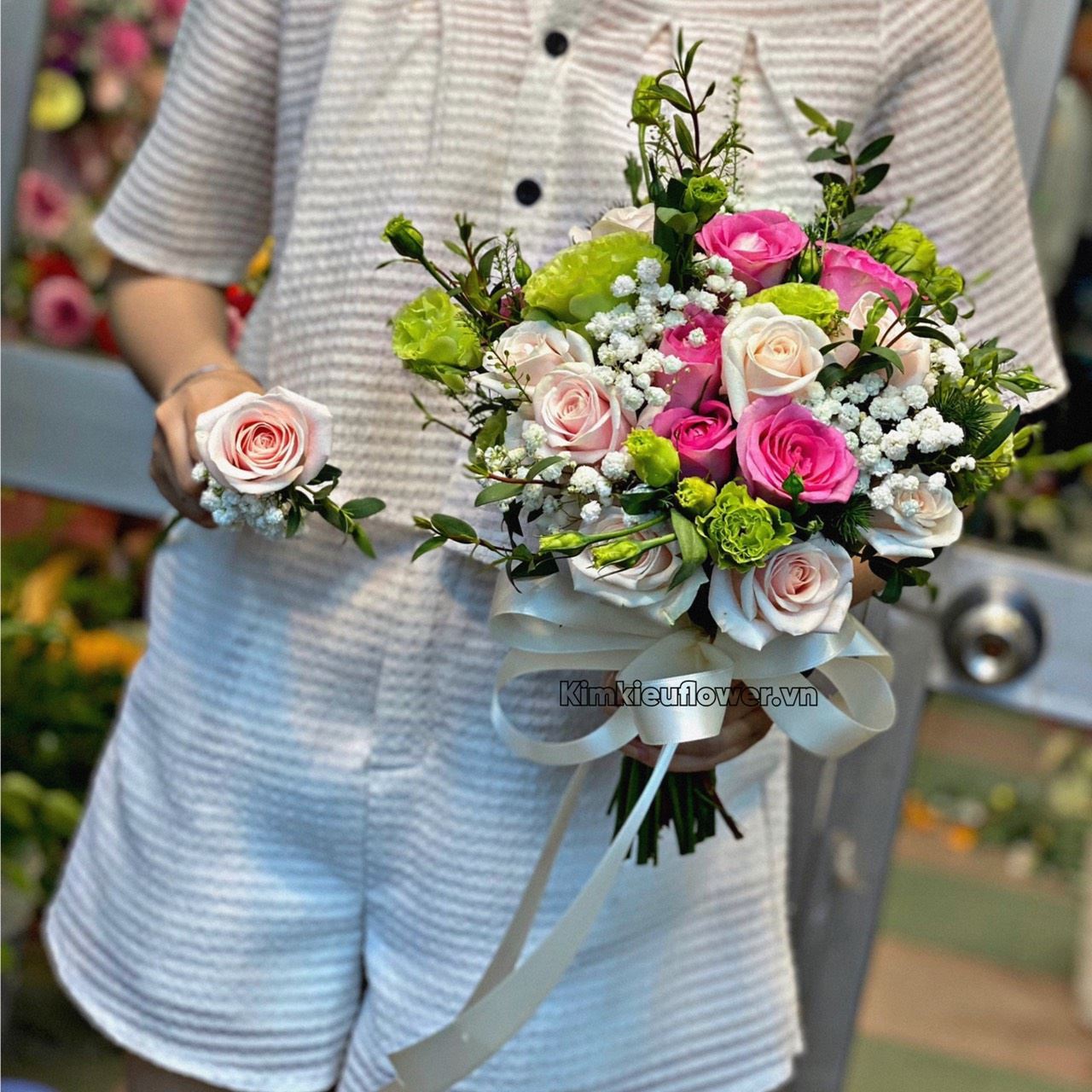 Mẫu HC78 gồm các loại hoa: + hoa hồng kem + hoa hồng sen nhí + cát tường xanh lá + và các lá phụ khác- Liên hệ KIM KIỀU FLOWER để tư vấn thiết kế mẫu hoa theo yêu cầu bạn nhé!