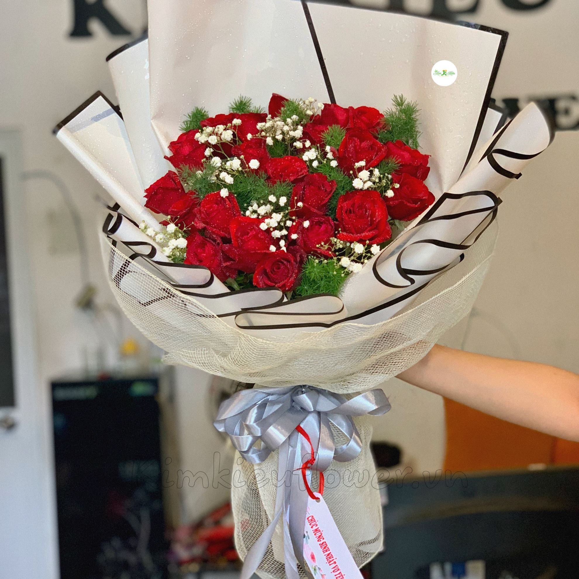 Mẫu HB110 gồm các loại hoa : + 20 hoa hồng đỏ + và các hoa, lá phụ khác - Liên hệ KIM KIỀU FLOWER để tư vấn thiết kế mẫu hoa theo yêu cầu bạn nhé!