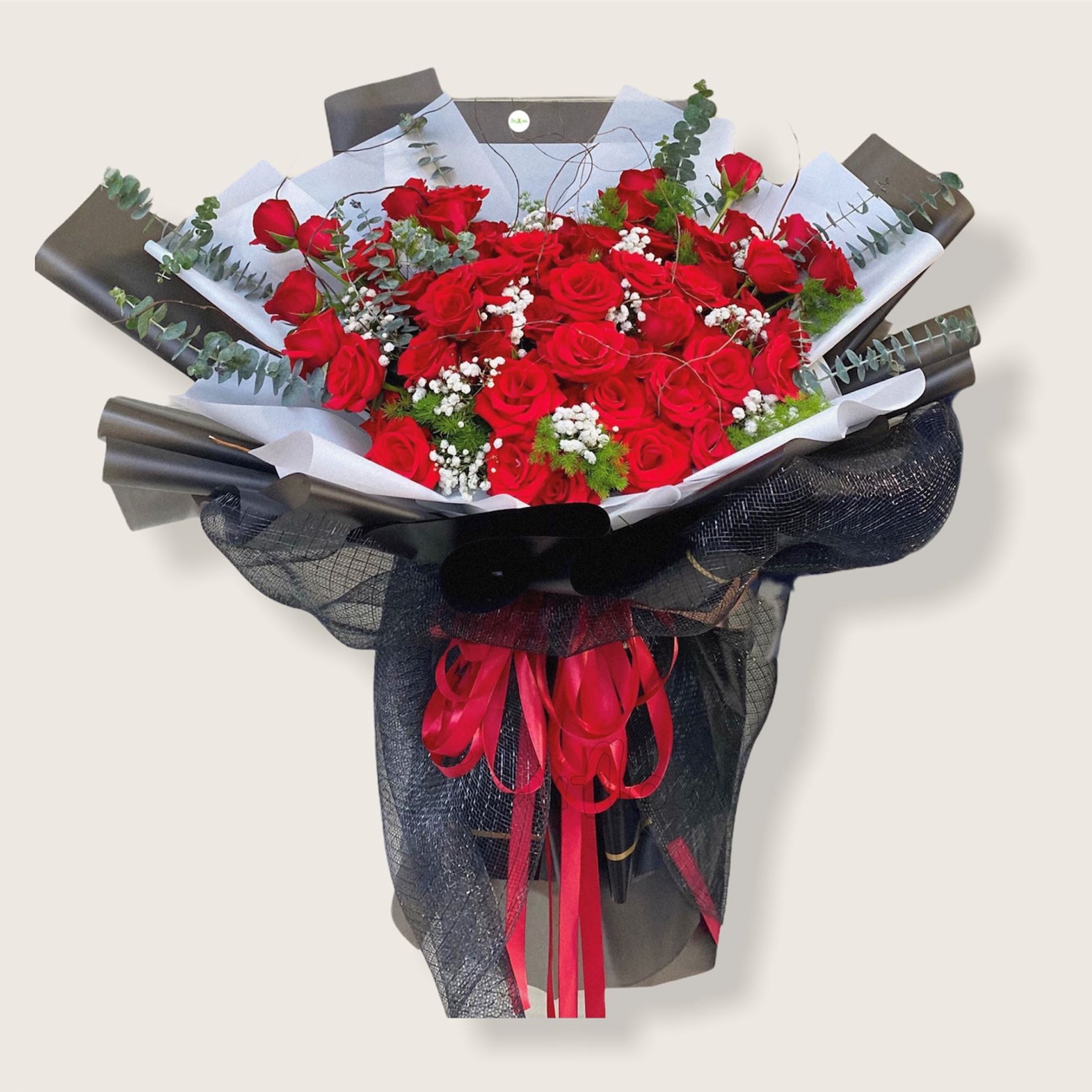 Mẫu HB130 : Bó hoa hồng đỏ siêu to, được gói với giấy gói màu đen, làm bó hoa trở nên sang trọng, lãng mạng . Thích hợp tặng bạn gái, sinh nhật , hoặc các dịp lễ quan trọng trong năm - Mẫu HB130 gồm các loại hoa: + 46 hoa hồng đỏ + và các lá phụ khác -Liên hệ KIM KIỀU FLOWER để tư vấn thiết kế mẫu hoa theo yêu cầu bạn nhé!