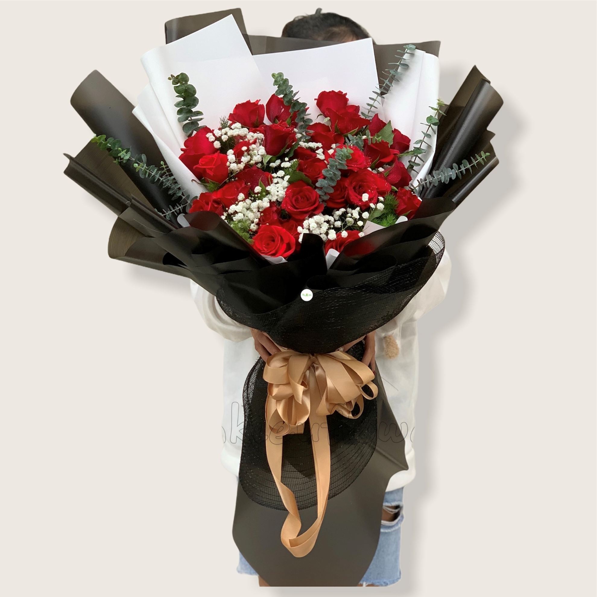 Mẫu HB139 gồm các loại hoa: + 30 hoa hồng đỏ + hoa và các lá phụ khác -Liên hệ KIM KIỀU FLOWER để tư vấn thiết kế mẫu hoa theo yêu cầu bạn nhé!