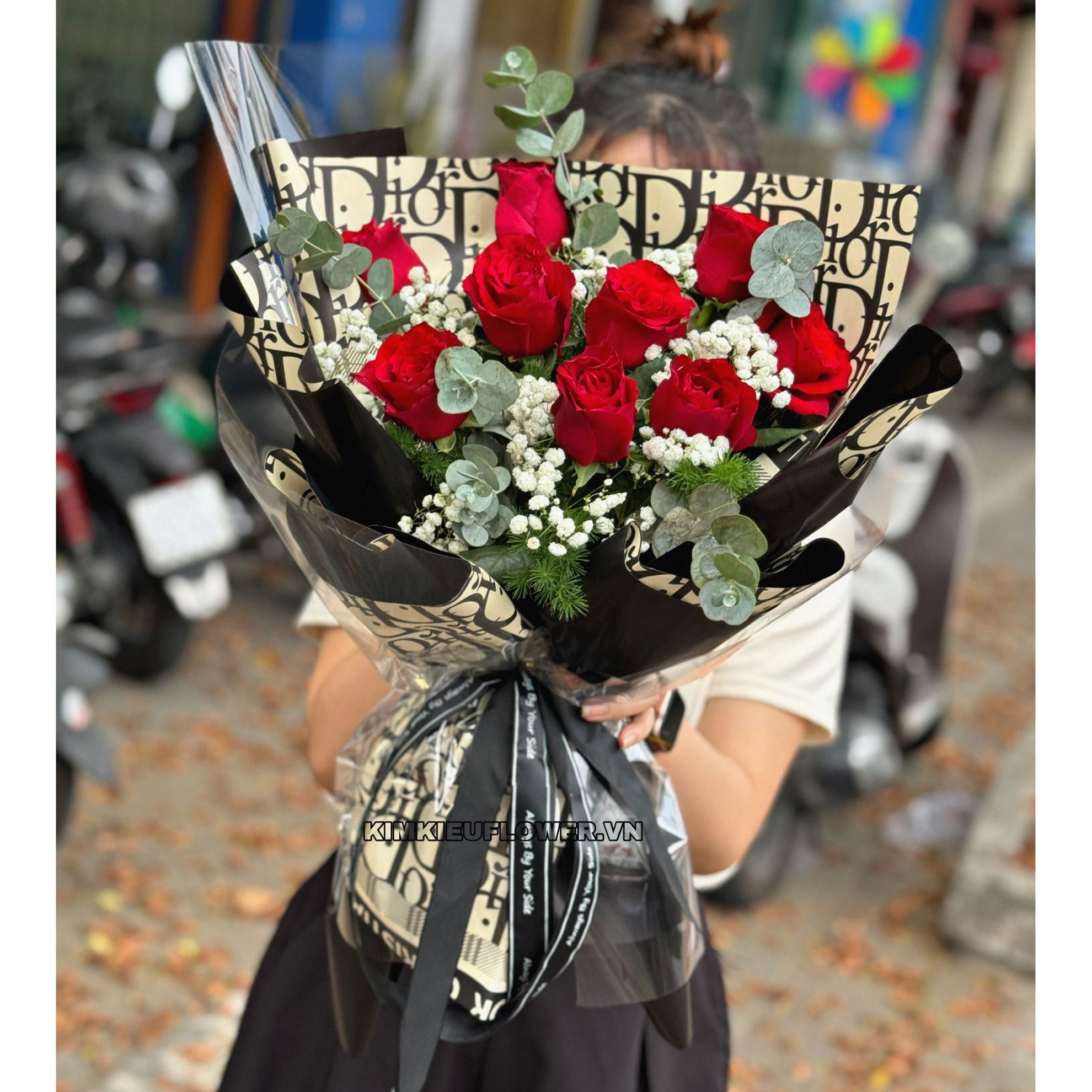 Mẫu HB692 gồm các loại hoa: + 9 hoa hồng đỏ + và các lá phụ khác - Liên hệ KIM KIỀU FLOWER để tư vấn thiết kế mẫu hoa theo yêu cầu bạn nhé!