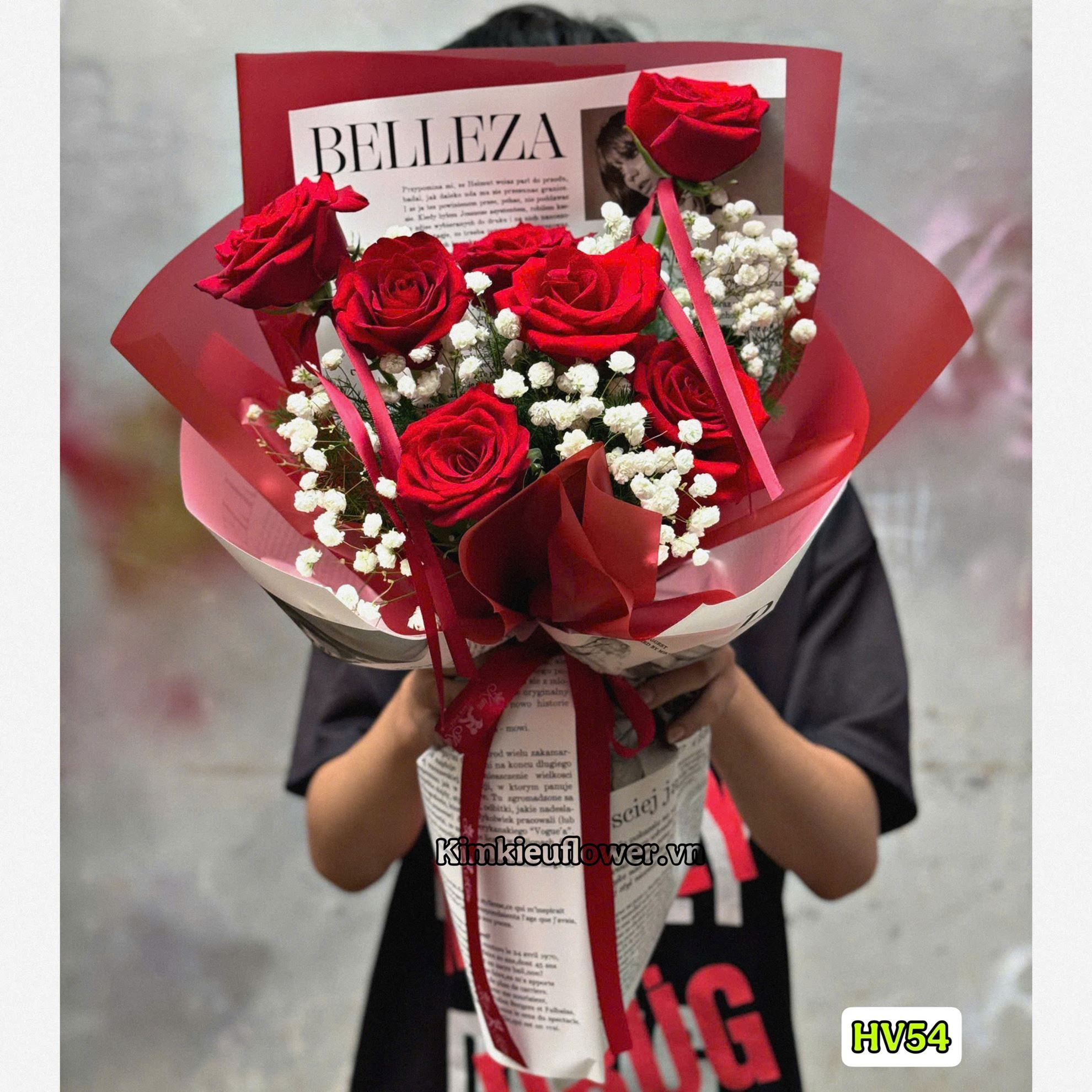 Mẫu HV54 gồm các loại hoa: + 7 hồng ĐỎ + baby trắng - và các hoa, lá phụ khác - Liên hệ KIM KIỀU FLOWER để tư vấn thiết kế mẫu hoa theo yêu cầu bạn nhé!