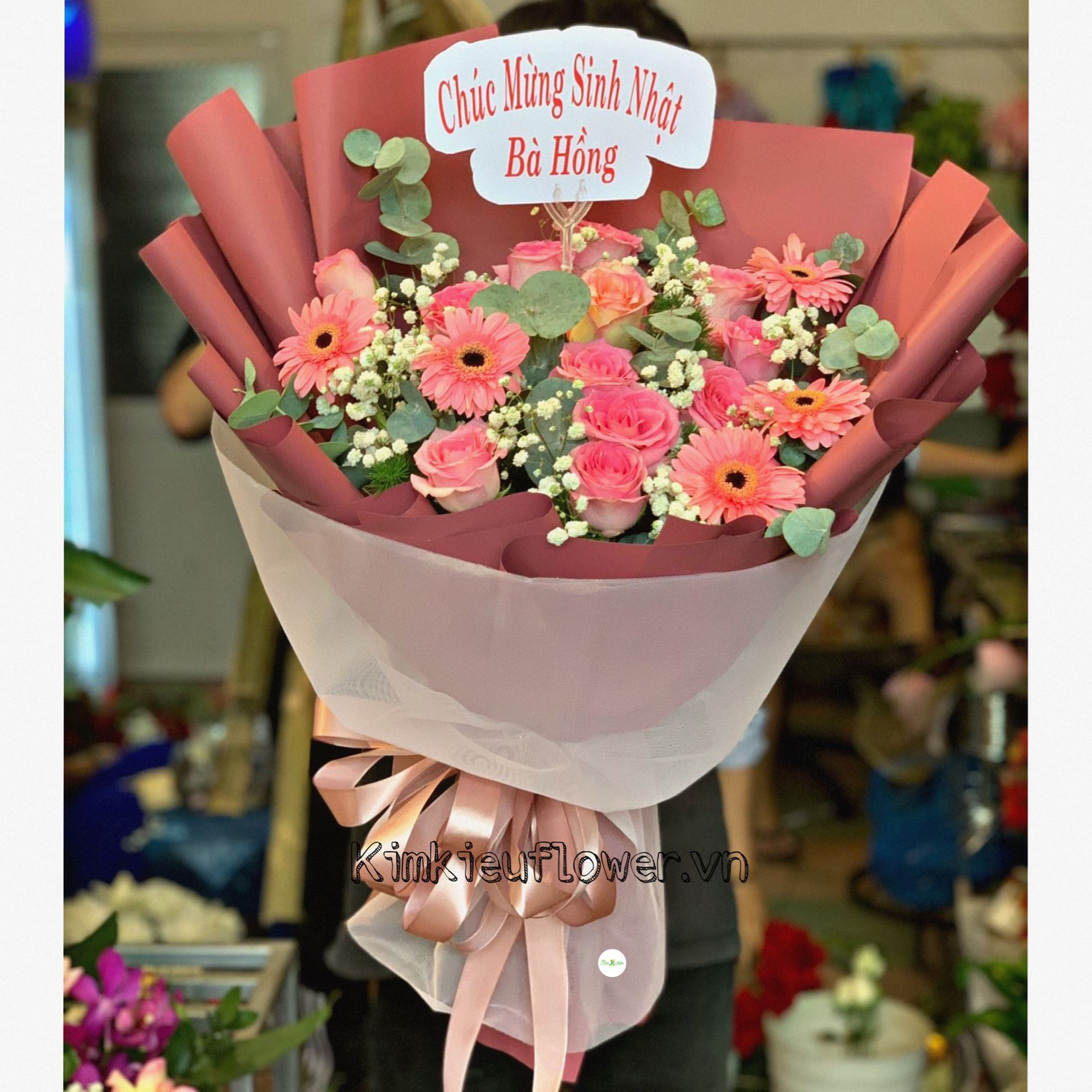 Mẫu HB369 gồm các loại hoa: + hoa hồng dâu + hoa hỷ viền + đồng tiền nhí + và các lá phụ khác - Liên hệ KIM KIỀU FLOWER để tư vấn thiết kế mẫu hoa theo yêu cầu bạn nhé!