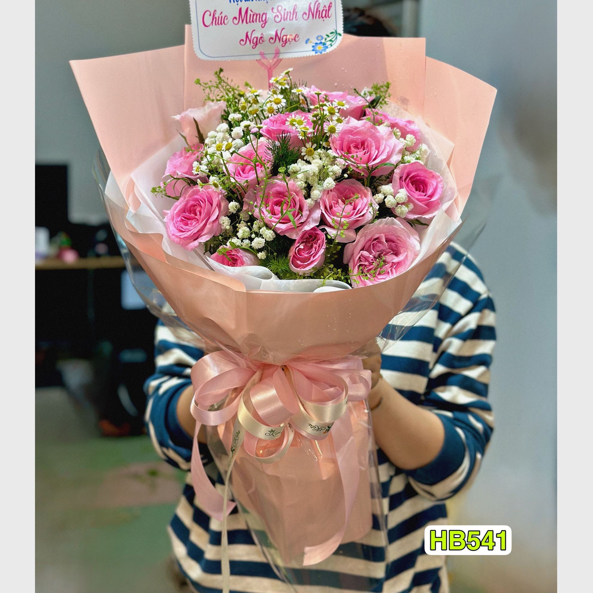 Mẫu HB541 gồm các loại hoa: + 14 hoa hồng lạc thần + và các hoa, lá phụ khác - Liên hệ KIM KIỀU FLOWER để tư vấn thiết kế mẫu hoa theo yêu cầu bạn nhé!