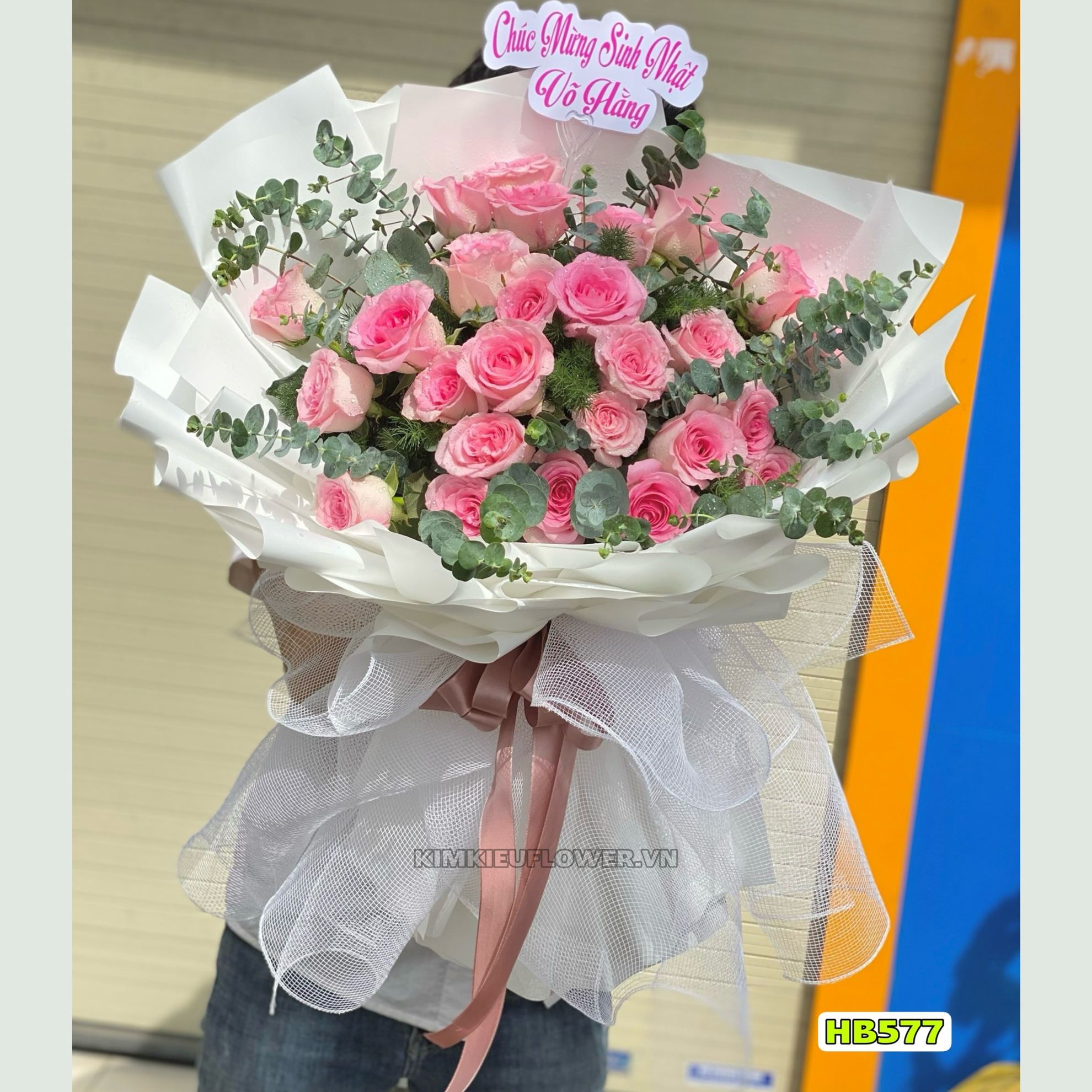 Bó hoa hồng lạc thần - HB577 gồm: + 26 Hoa hồng lạc thần + và các lá phụ khác - Liên hệ KIM KIỀU FLOWER để tư vấn thiết kế mẫu hoa theo yêu cầu bạn nhé!