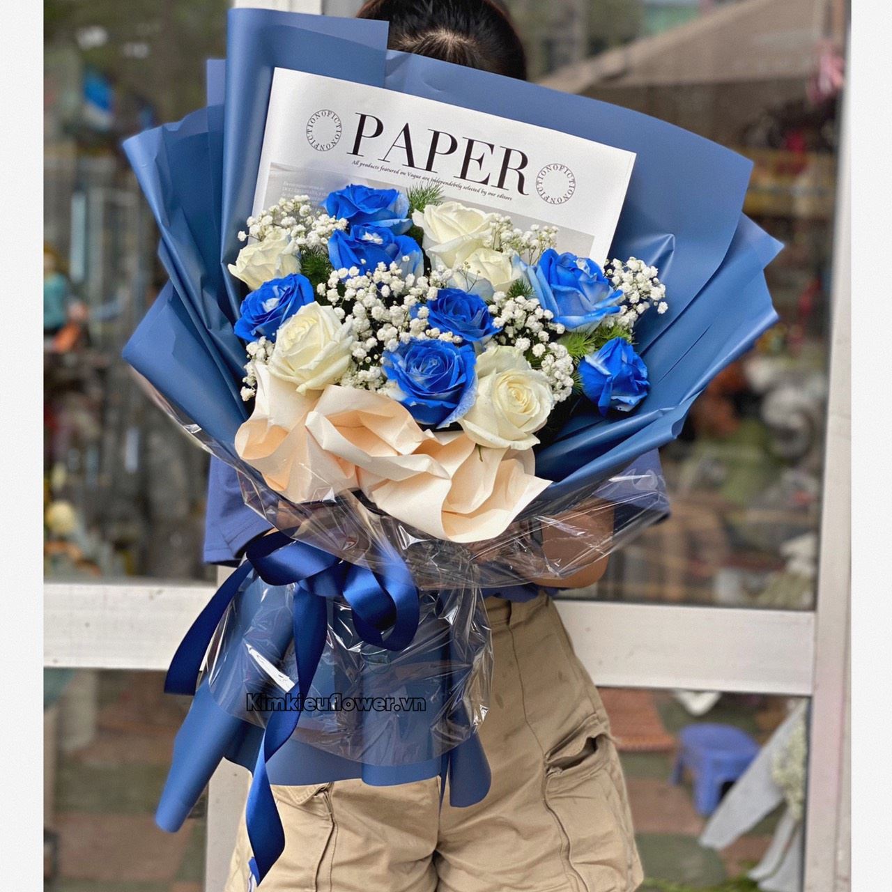 Mẫu HB482 gồm các loại hoa: + 5 hoa hồng trắng + 7 hoa hồng xịt xanh + và các lá phụ khác - Liên hệ KIM KIỀU FLOWER để tư vấn thiết kế mẫu hoa theo yêu cầu bạn nhé!