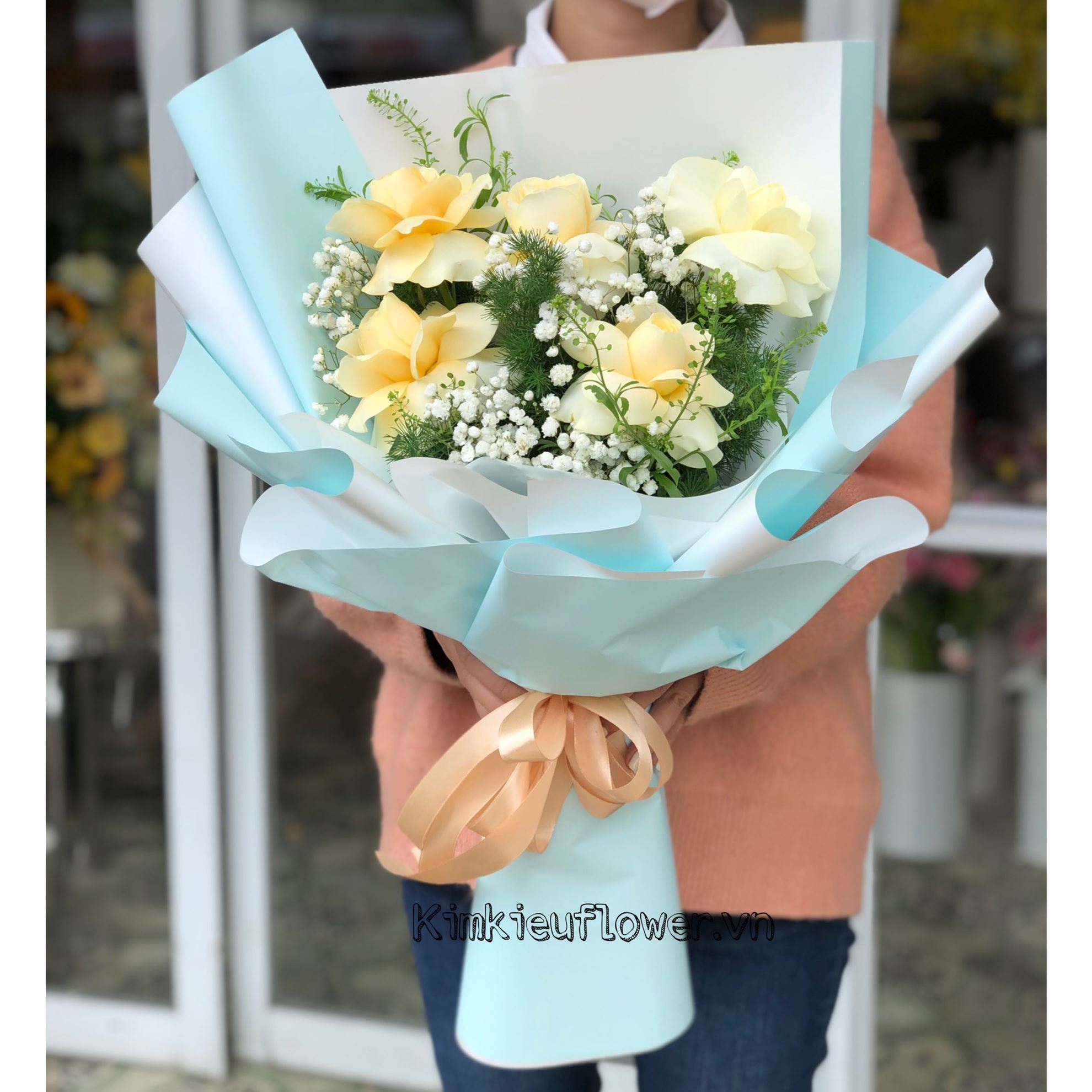 Mẫu HB383 gồm các loại hoa: + 5 hoa hồng victor + và các lá phụ khác - Liên hệ KIM KIỀU FLOWER để tư vấn thiết kế mẫu hoa theo yêu cầu bạn nhé!