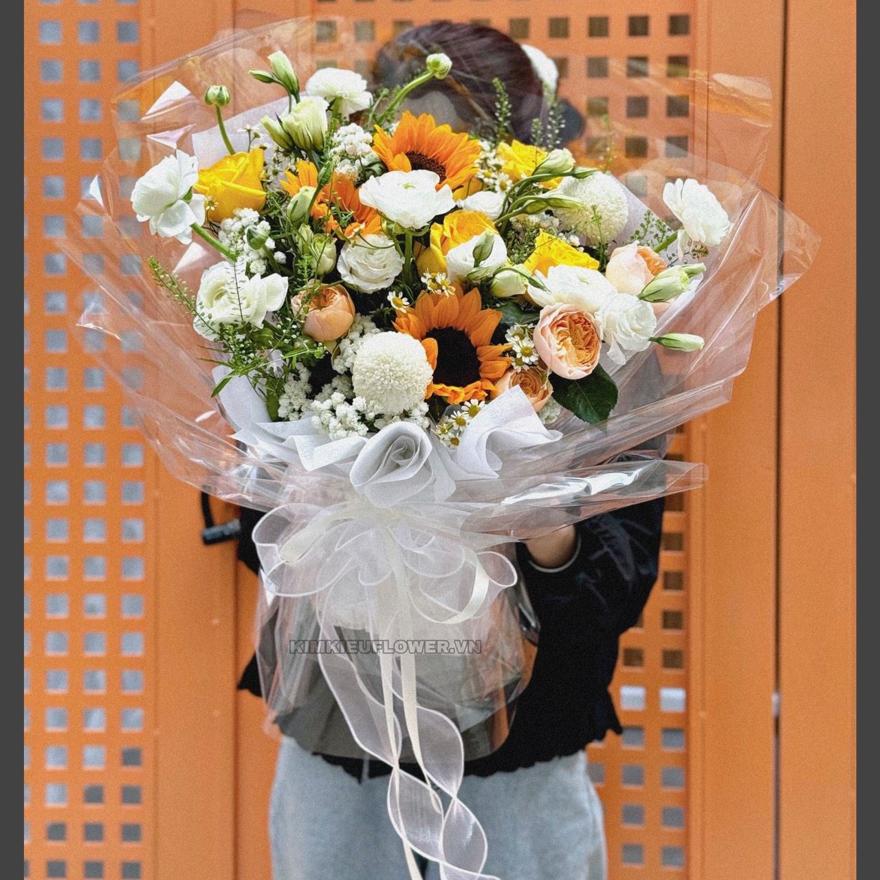 Bó hoa hướng dương, cát tường trắng, pingpong,.... -HB606