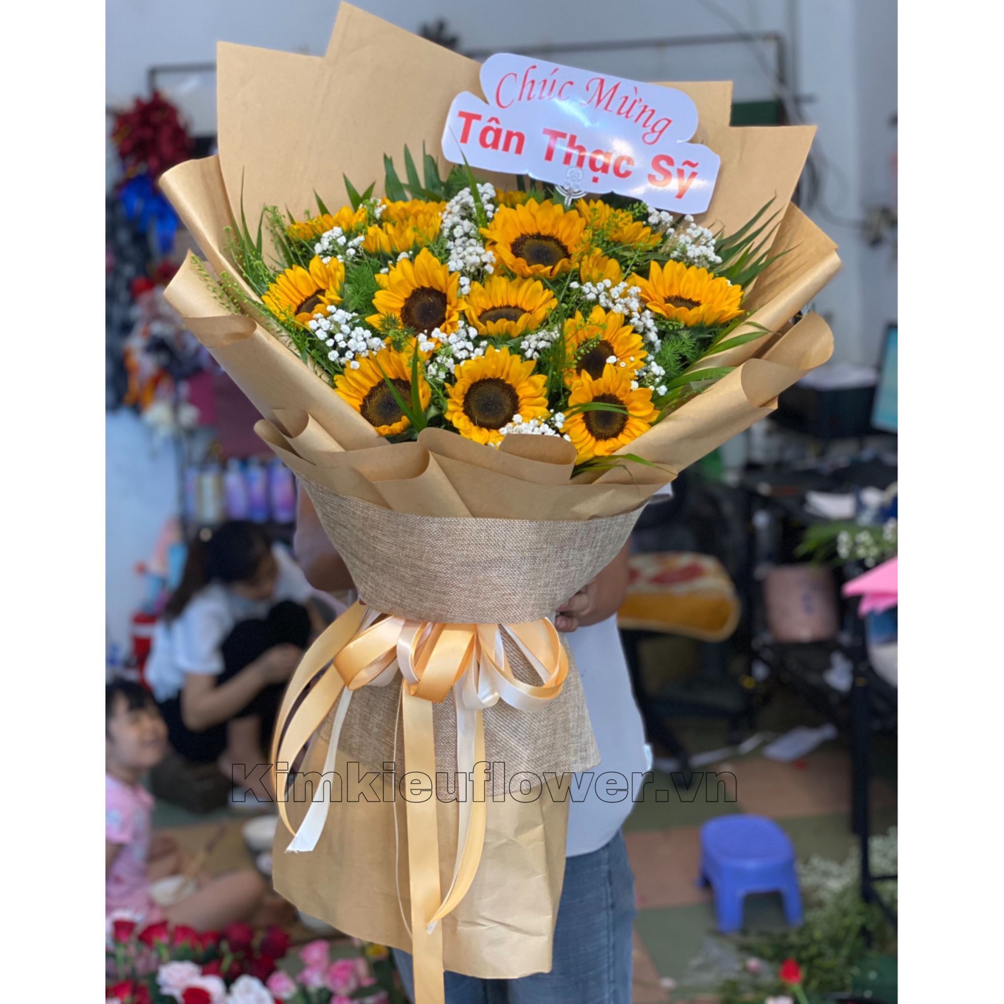 Mẫu HB329 Gồm các loại hoa: + 15 hoa hướng dương + và các lá phụ khác - Liên hệ KIM KIỀU FLOWER để tư vấn thiết kế mẫu hoa theo yêu cầu bạn nhé!