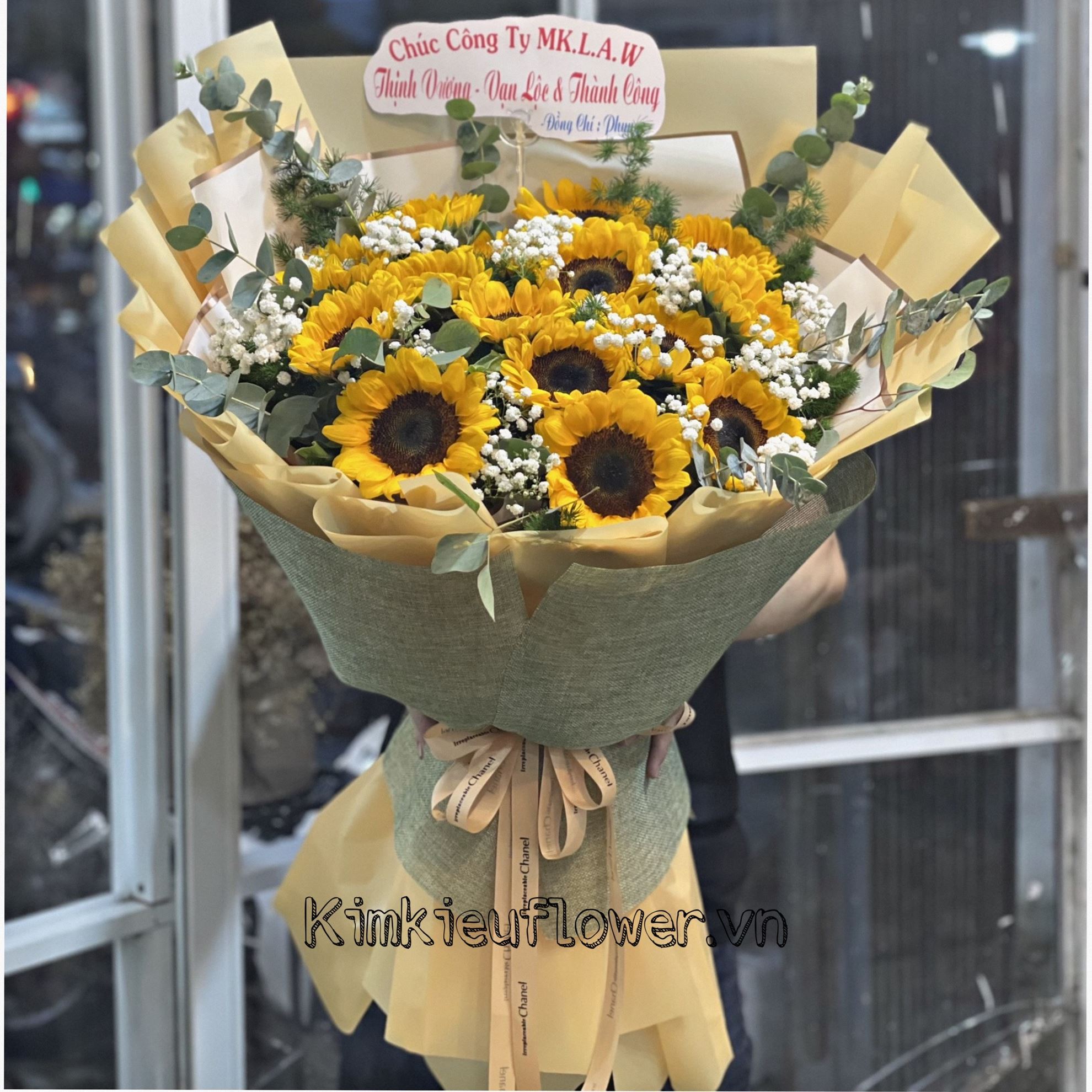 Mẫu HB379 gồm các loại hoa: + 15 hoa hướng dương + và các lá phụ khác - Liên hệ KIM KIỀU FLOWER để tư vấn thiết kế mẫu hoa theo yêu cầu bạn nhé!