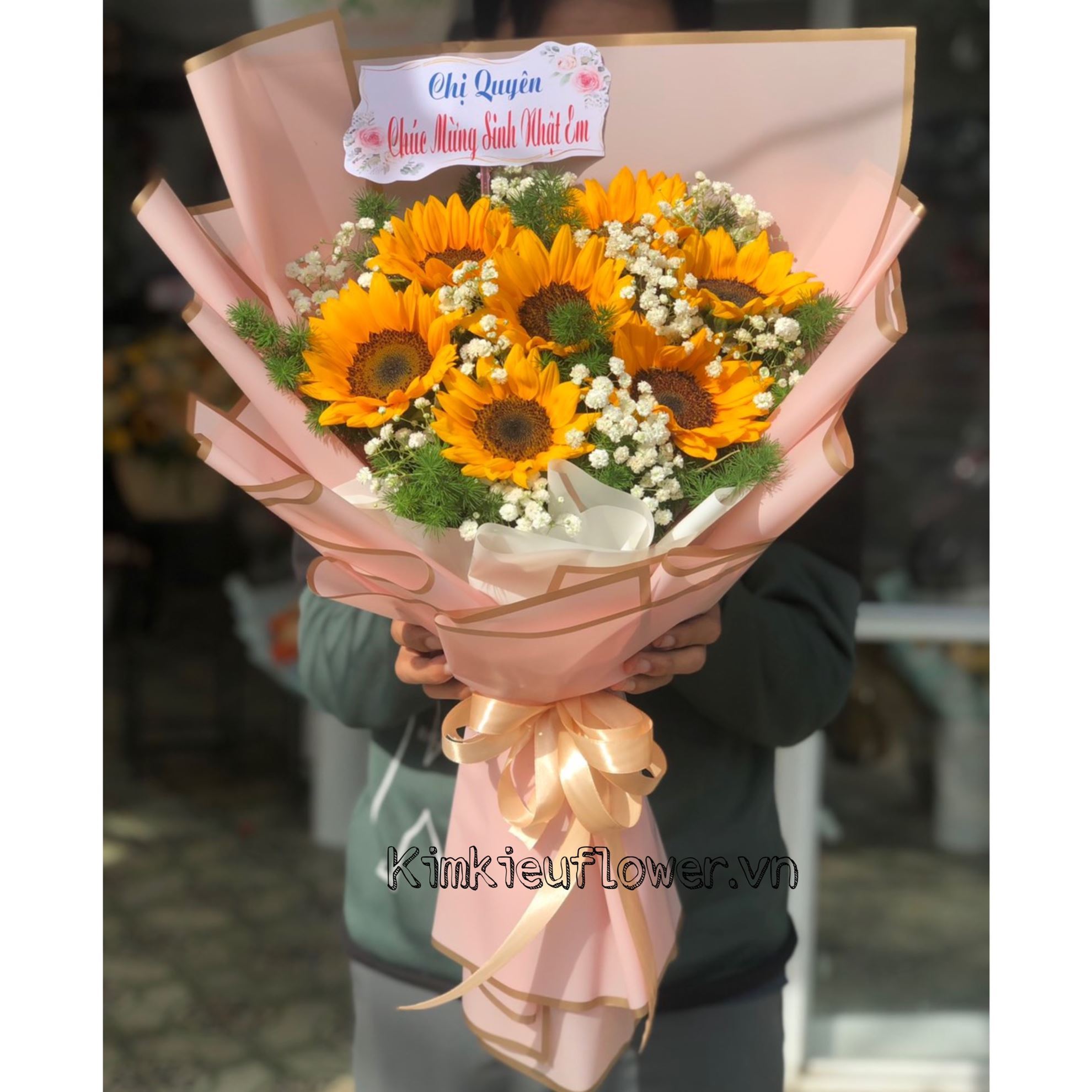 Mẫu HB382 gồm các loại hoa: + 7 hoa hướng dương + và các lá phụ khác - Liên hệ KIM KIỀU FLOWER để tư vấn thiết kế mẫu hoa theo yêu cầu bạn nhé!