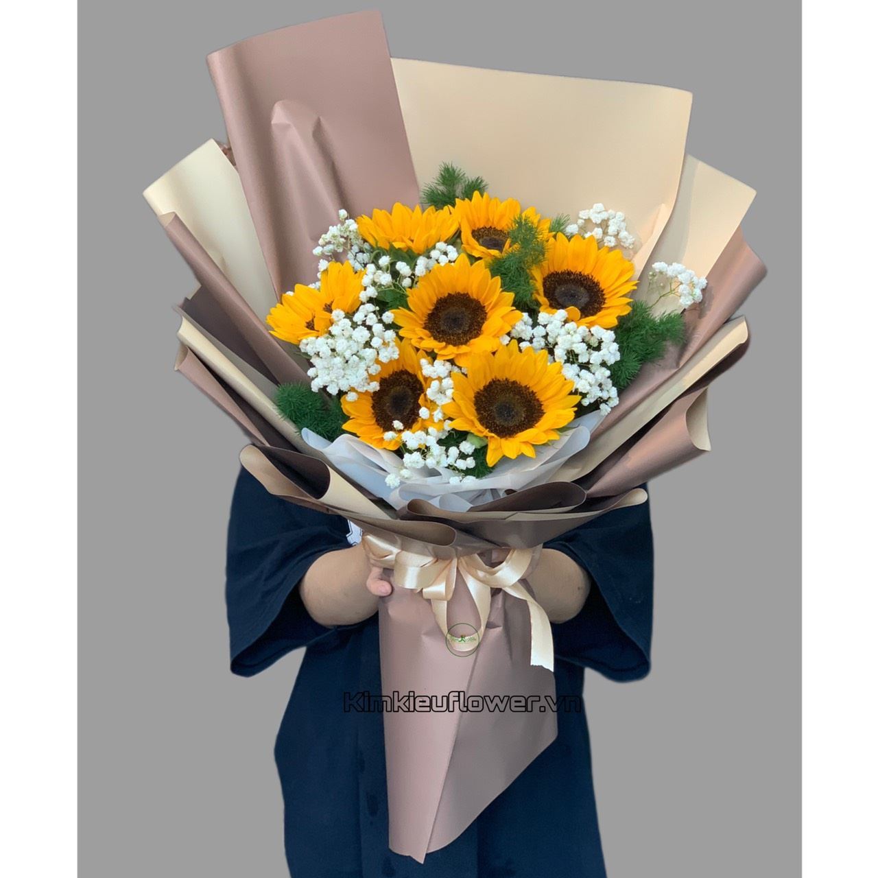 Mẫu HB441 gồm các loại hoa: + 7 hoa hướng dương + và các lá phụ khác - Liên hệ KIM KIỀU FLOWER để tư vấn thiết kế mẫu hoa theo yêu cầu bạn nhé!