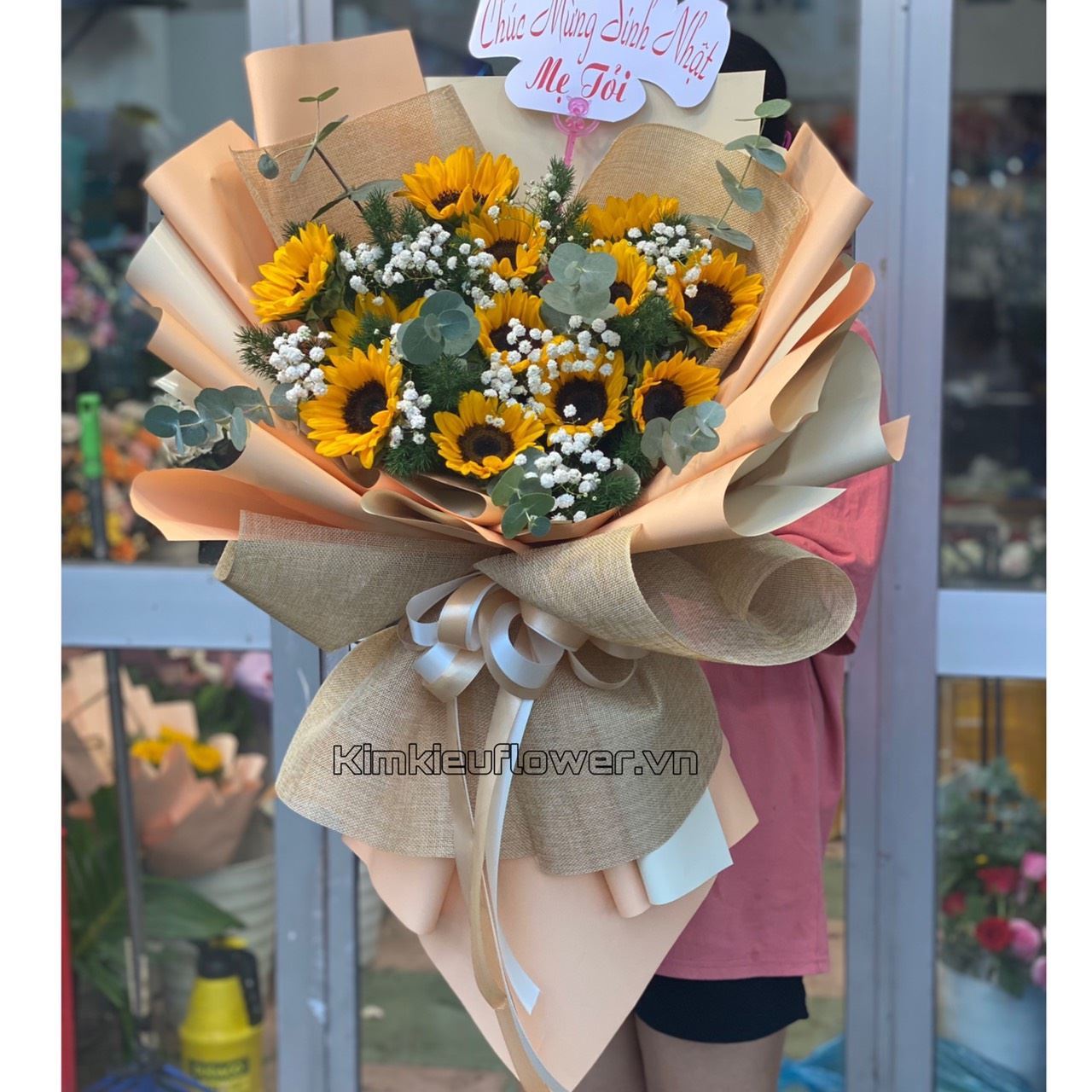 Mẫu HB451 gồm các loại hoa: + hoa hướng dương + và các hoa,lá phụ khác - Liên hệ KIM KIỀU FLOWER để tư vấn thiết kế mẫu hoa theo yêu cầu bạn nhé!