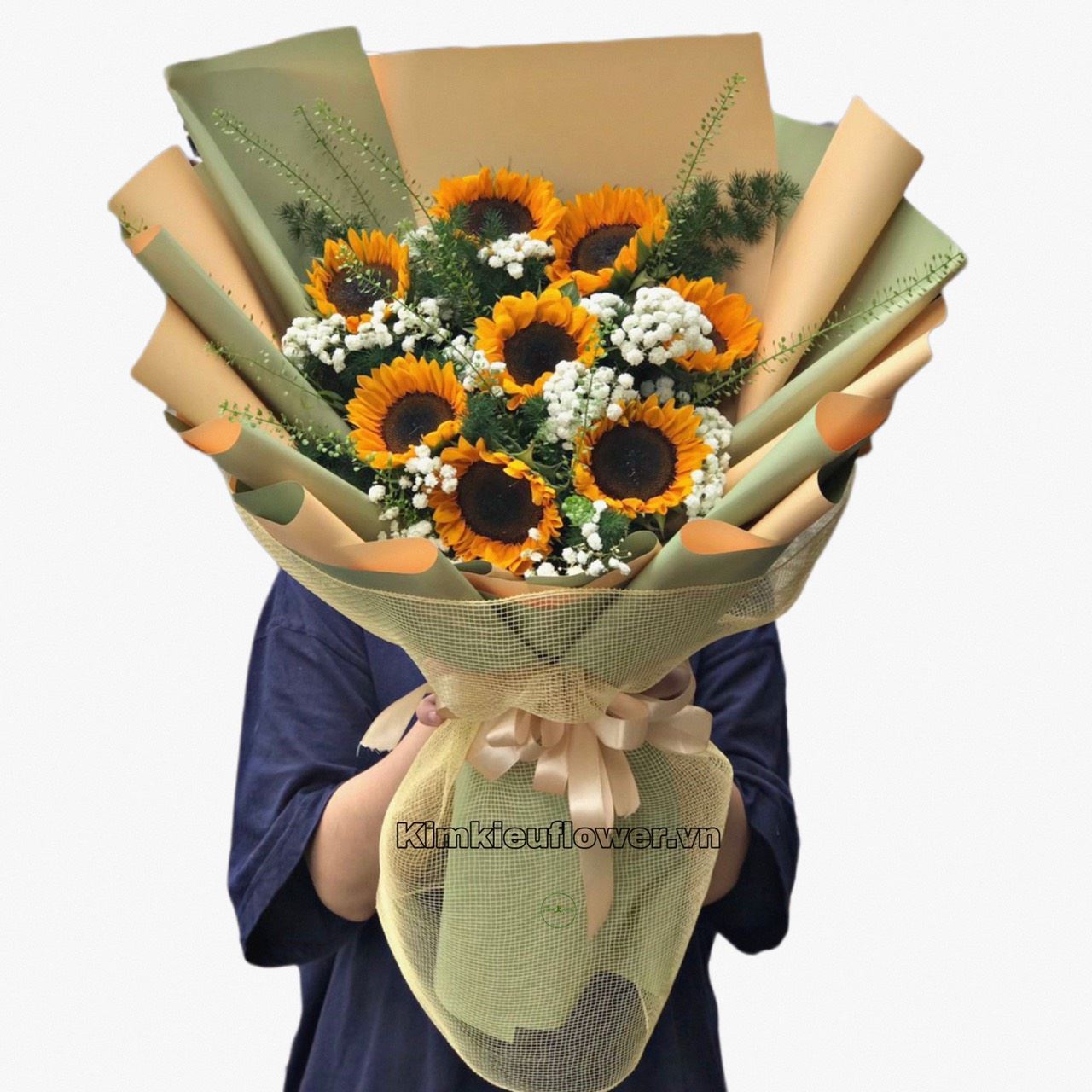 Mẫu HB459 gồm các loại hoa: + 8 hoa hướng dương + và các lá phụ khác - Liên hệ KIM KIỀU FLOWER để tư vấn thiết kế mẫu hoa theo yêu cầu bạn nhé!