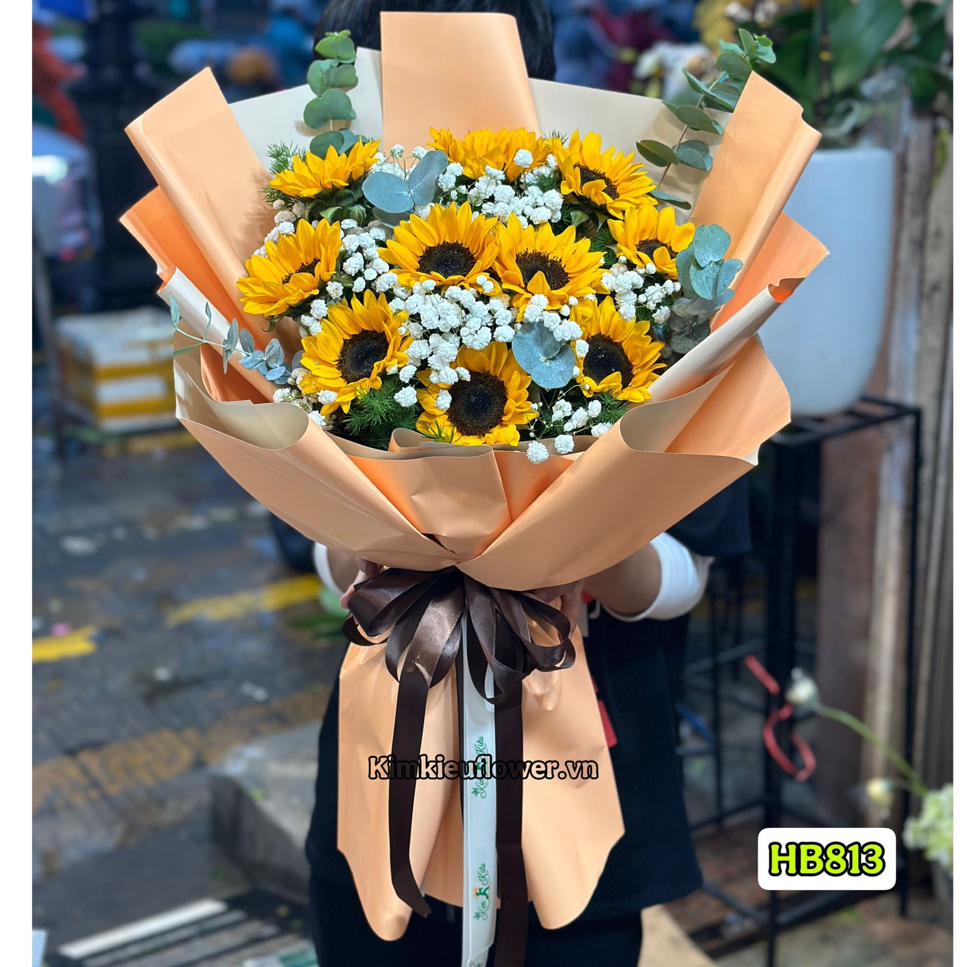 Mẫu HB813 gồm các loại hoa: + 10 hoa hướng dương + và các hoa,lá phụ khác - Liên hệ KIM KIỀU FLOWER để tư vấn thiết kế mẫu hoa theo yêu cầu bạn nhé!