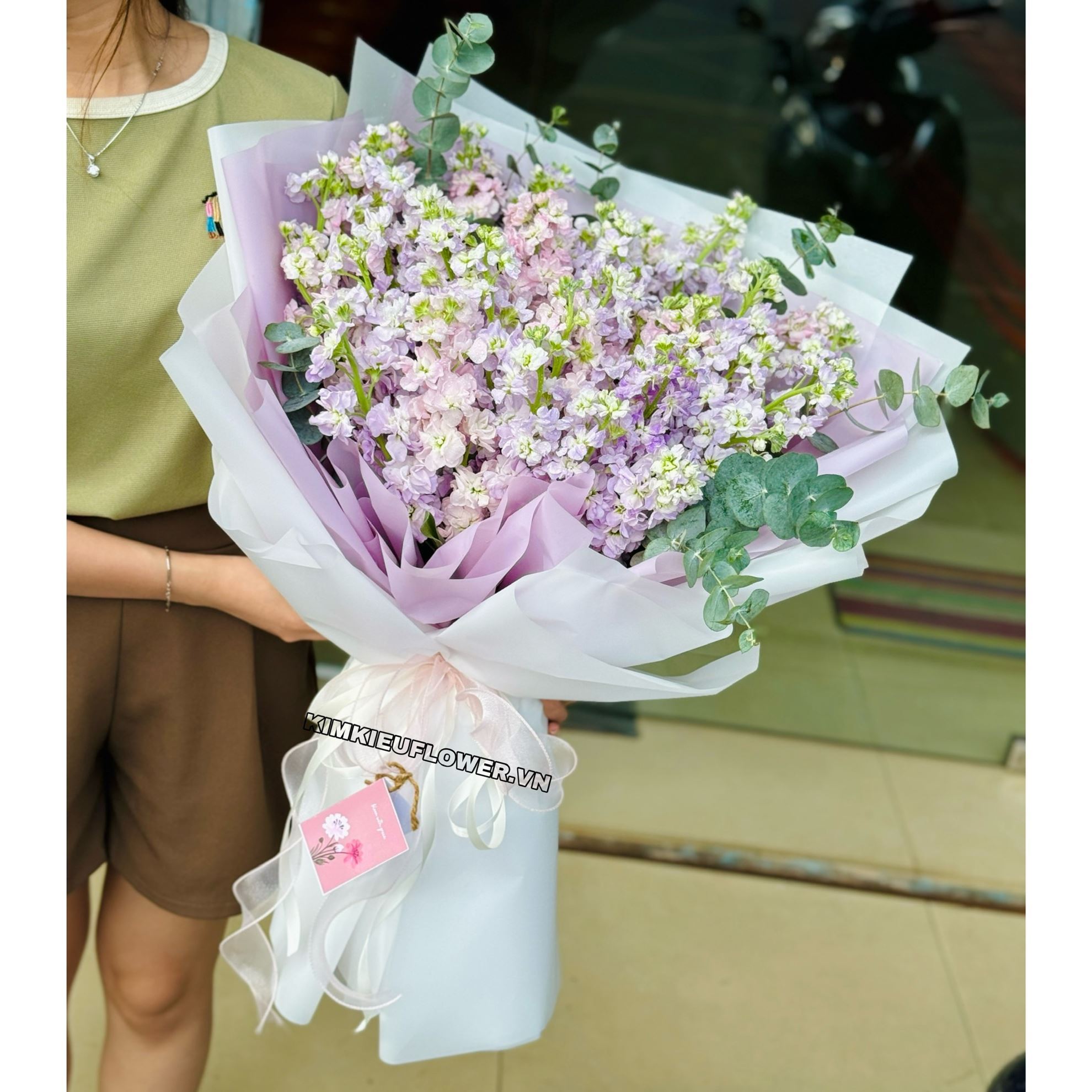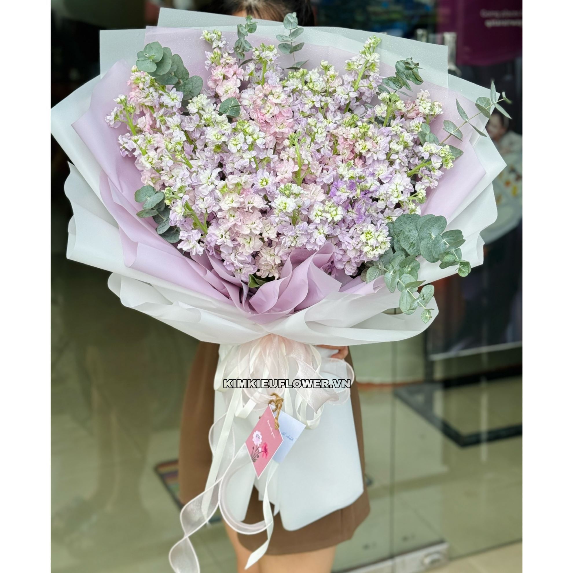 Mẫu HB689 gồm các loại hoa: + hoa phi yến tím + hoa phi yến hồng + và các lá phụ khác - Liên hệ KIM KIỀU FLOWER để tư vấn thiết kế mẫu hoa theo yêu cầu bạn nhé!