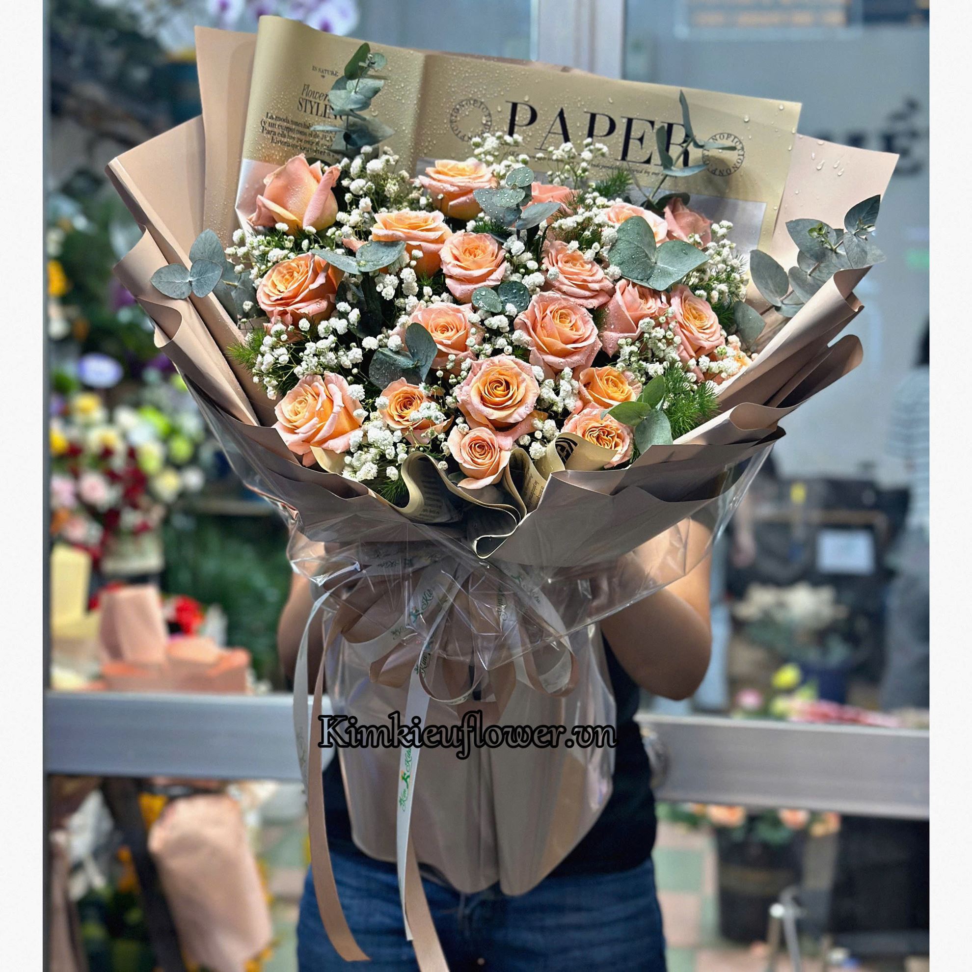 Mẫu HB738 gồm các loại hoa: + 20 hoa hồng shimmer + và các lá phụ khác - Liên hệ KIM KIỀU FLOWER để tư vấn thiết kế mẫu hoa theo yêu cầu bạn nhé!